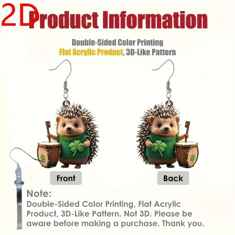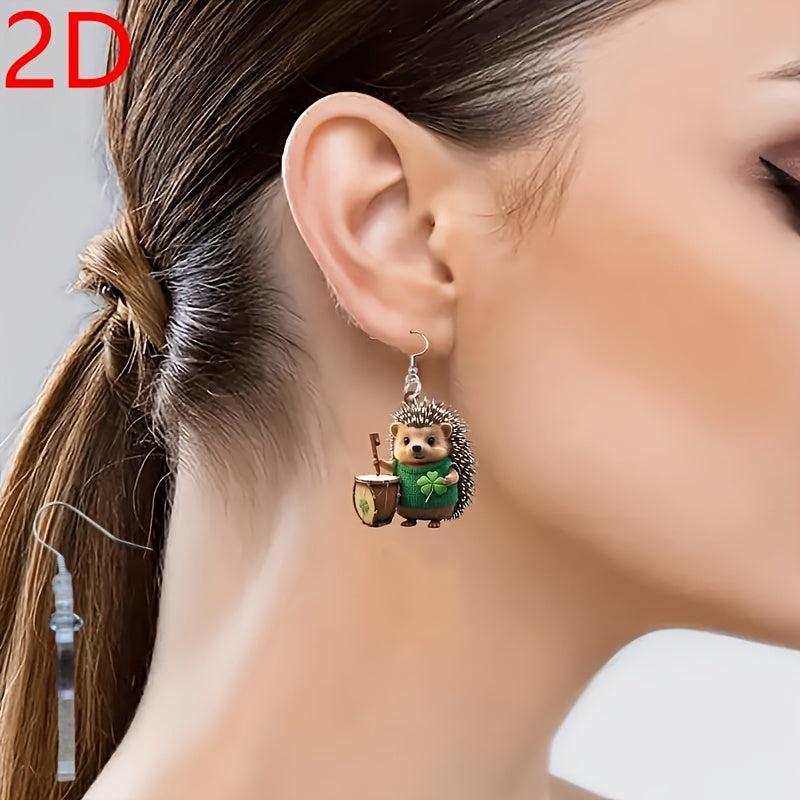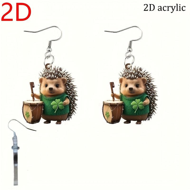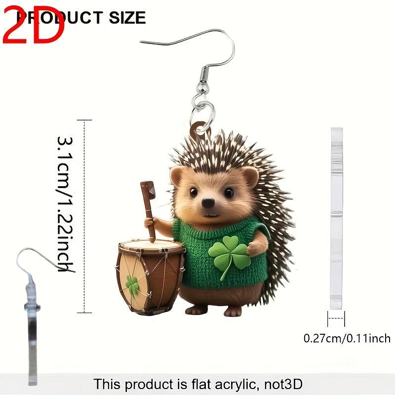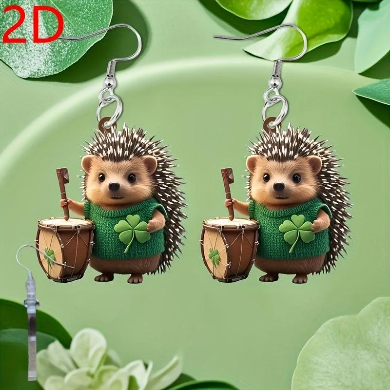 Get into the St. Patrick's Day spirit with these fun and fashionable earrings featuring a cute hedgehog design and four-leaf clover embellishment. The lightweight and durable acrylic material makes them comfortable to wear all day long.