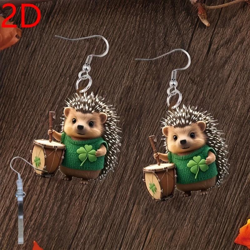 • St. Patrick's Day themed earrings with hedgehog and clover design