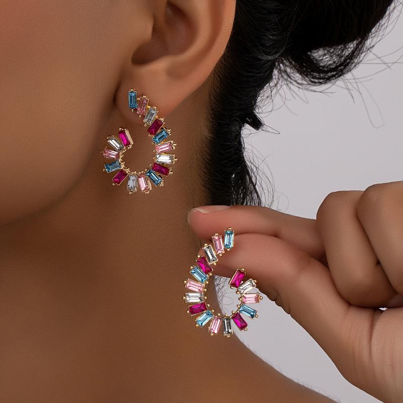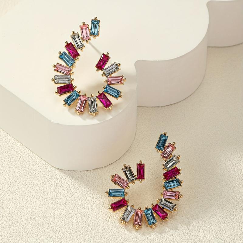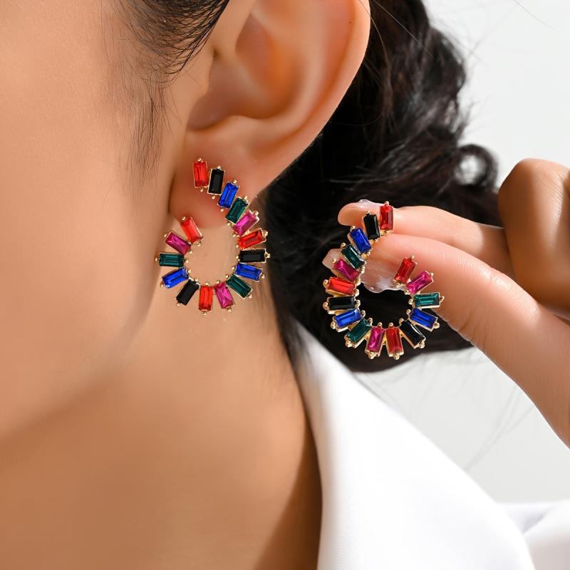 Add a pop of color to your outfit with these vibrant acrylic hoop earrings. The candy-colored gemstones are set in a golden-tone metal frame, making them perfect for casual attire or special occasions like Mother's Day, Teacher Appreciation parties, and more.