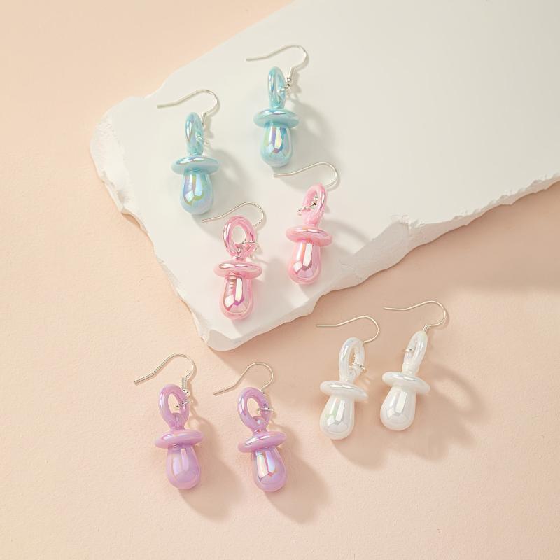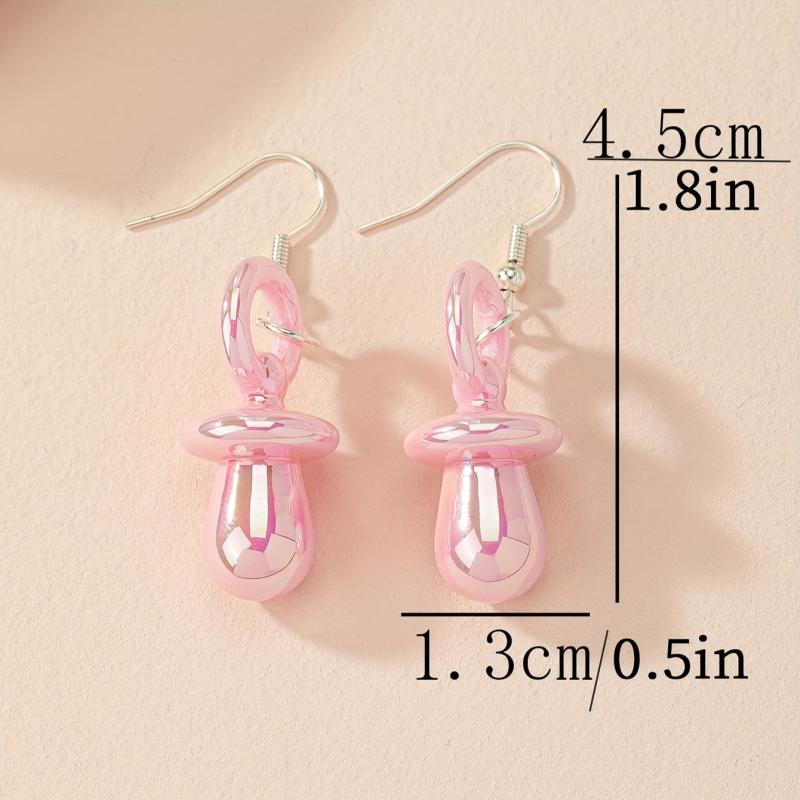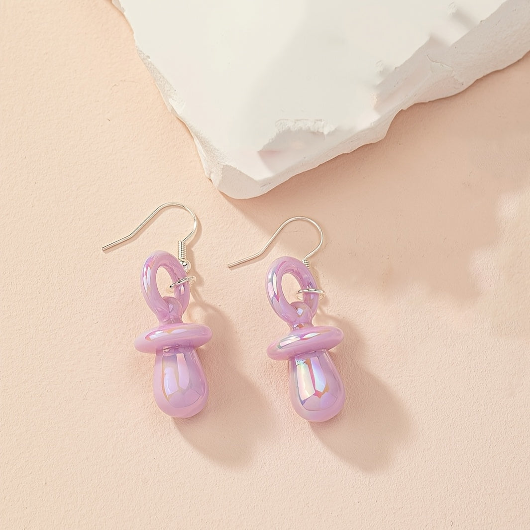 These 2pcs Acrylic Pacifier Pendants are fun and versatile earrings suitable for daily commuting, parties, holidays, and travel. They feature colorful and creative designs in cartoon candy colors.