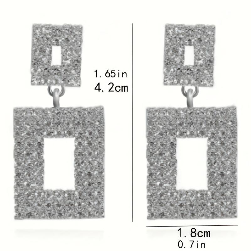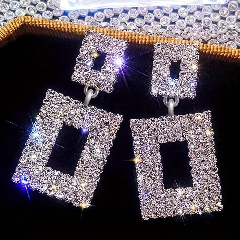 These delicate stud earrings feature a stunning rhinestone-encrusted geometric square design.