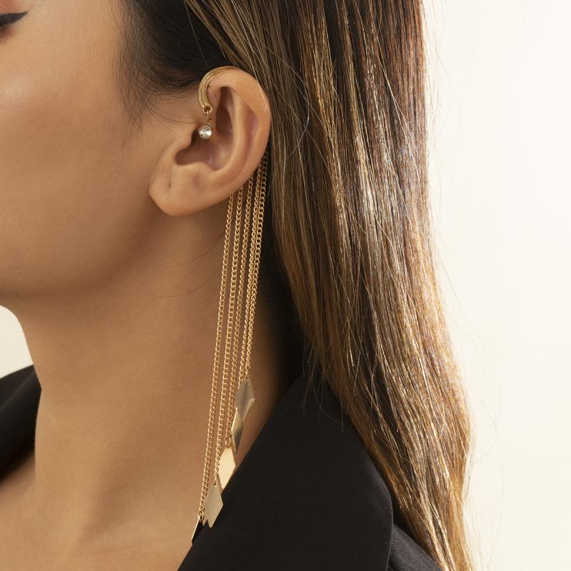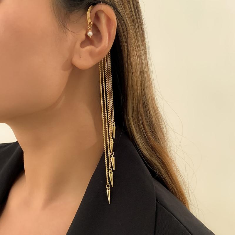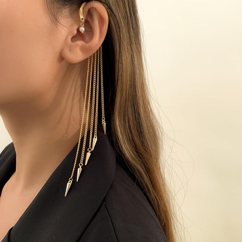 Unique and stylish ear cuffs with rivet tassel design, perfect for women and girls who want to make a statement with their jewelry. These non-pierced ear cuffs are a fine addition to any jewelry collection.