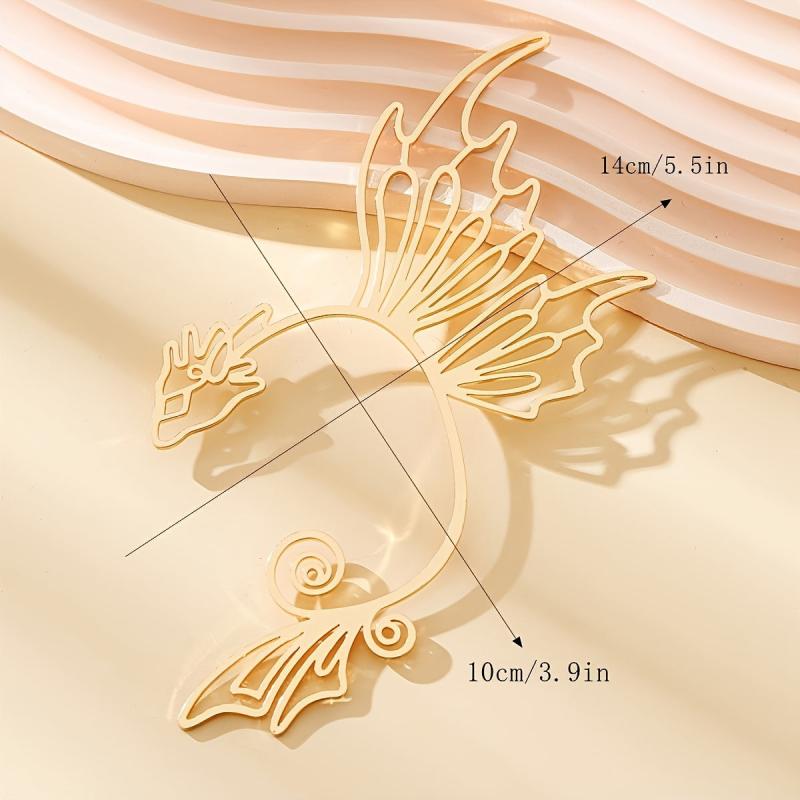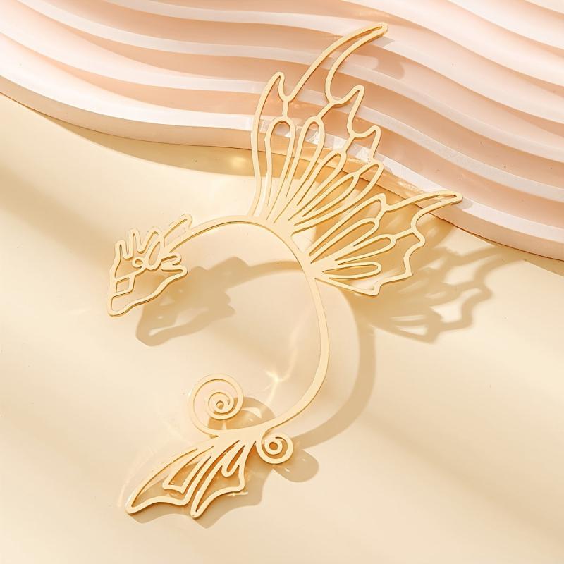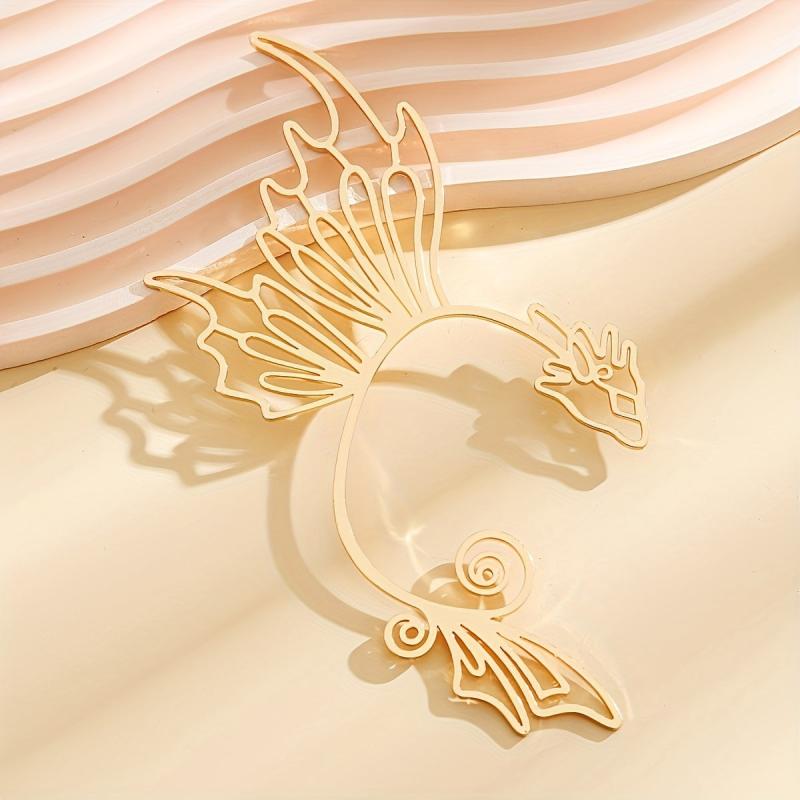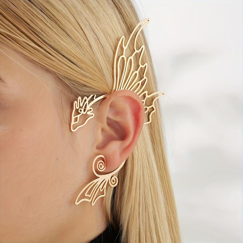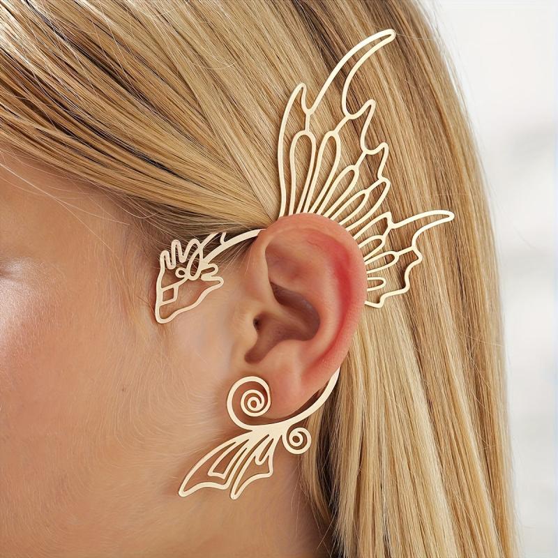 Unique flying dragon earrings with a vintage punk style, perfect for a bold and stylish look. Made of hollow alloy with cuff detail.