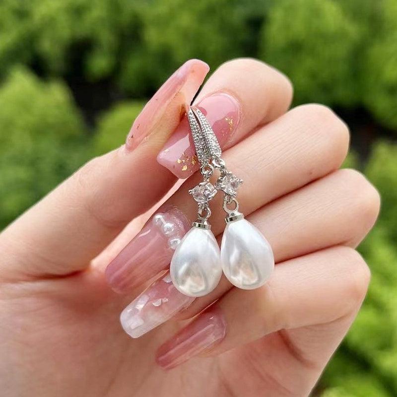 These elegant earrings feature faux pearls and zircon stones in a 925 silver plated setting. Perfect for brides, girls and as an anniversary gift.