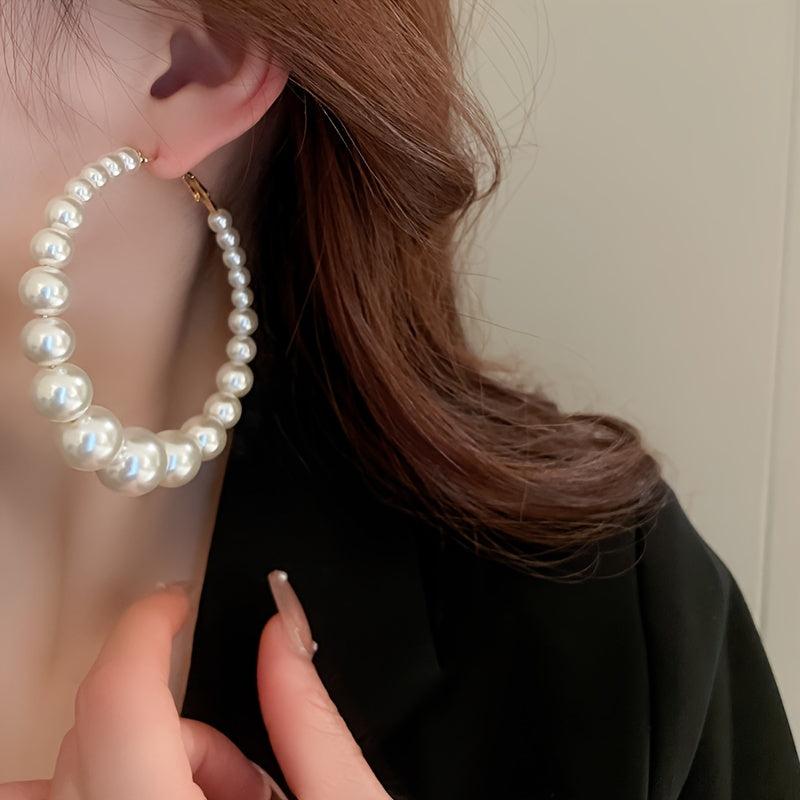 These faux pearl hoop earrings add a touch of elegance to any outfit. Classic style and nickel free, perfect for sensitive ears.