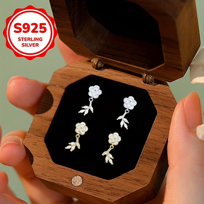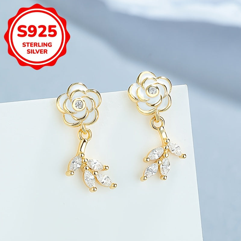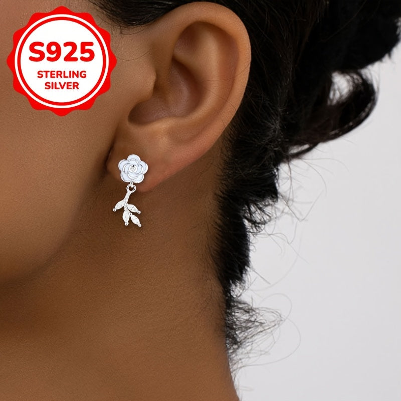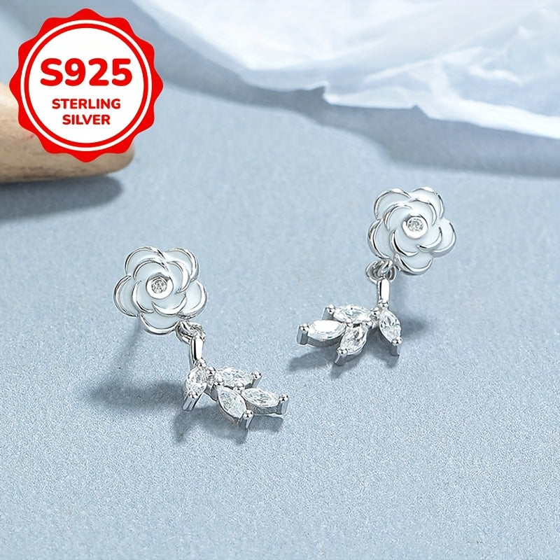 These elegant earrings are crafted from S925 silver and feature a beautiful flower design with synthetic zirconia inlay. They are lightweight at 1.6g and suitable for daily wear or as a gift for Mother's Day.