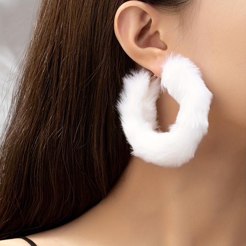 Fluffy Furry Hoop Earrings Soft Faux Fur Lightweight Comfortable