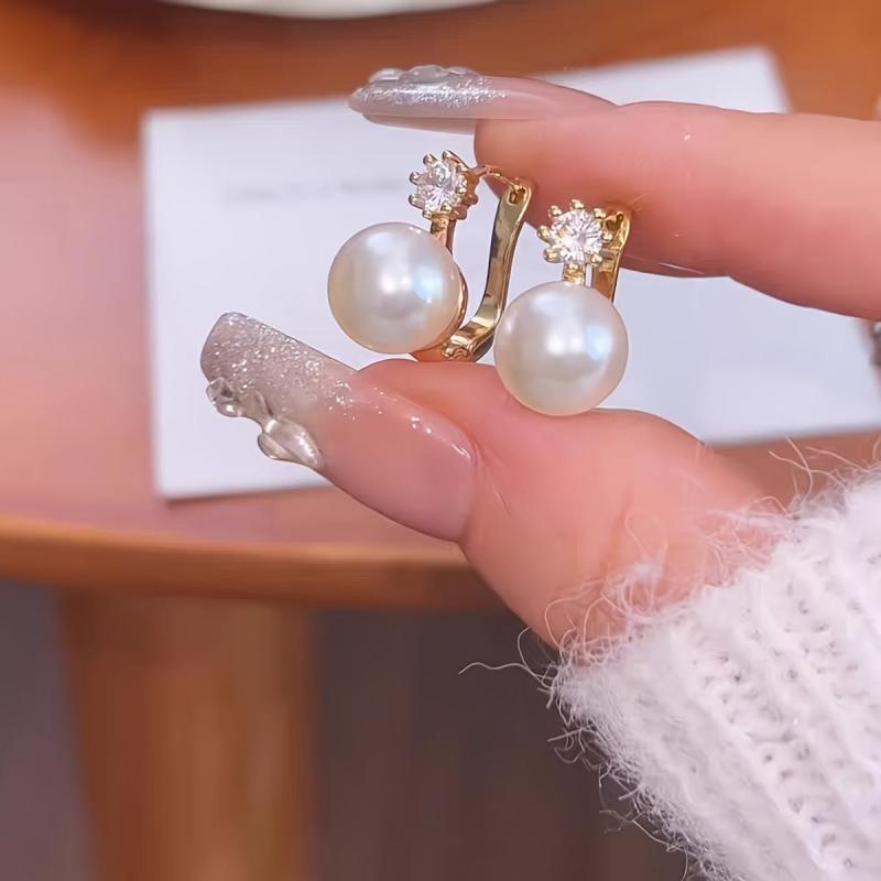 Add a touch of French elegance to your outfit with these stunning sunflower sparkle cubic zirconia and faux pearl stud earrings. Ideal for daily wear and as a thoughtful gift for someone special.