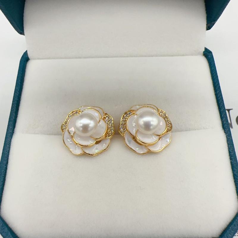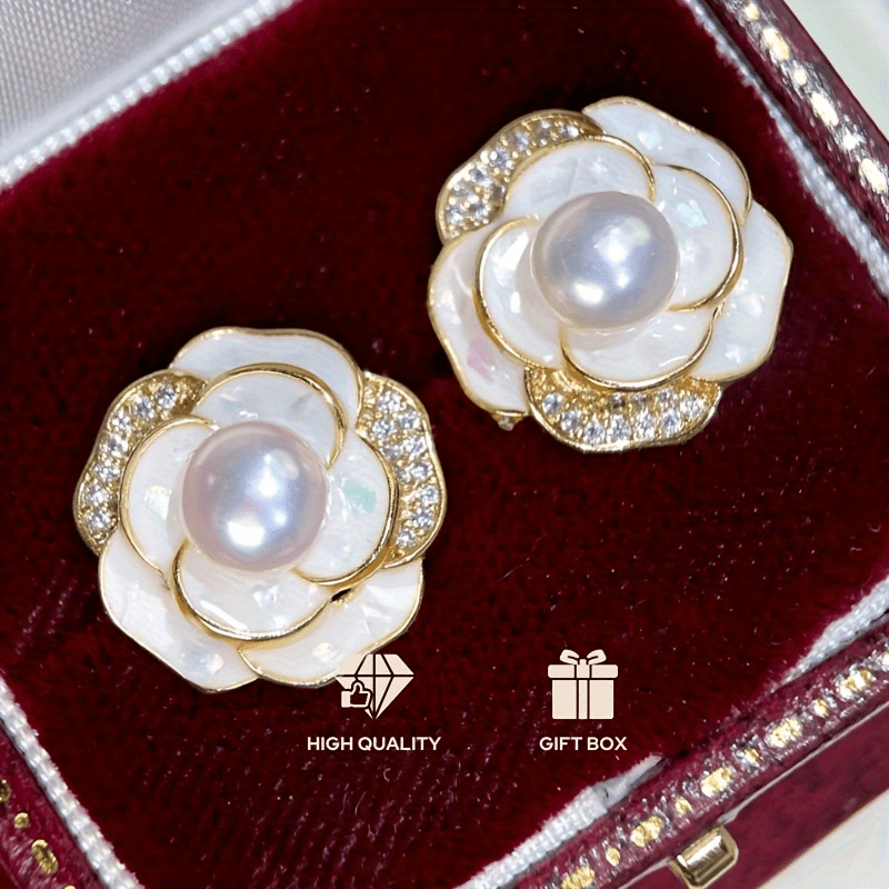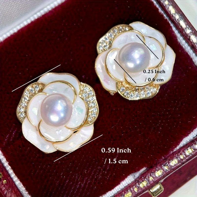 These beautiful rose-shaped hoop earrings are a perfect gift for birthdays or anniversaries. They feature freshwater pearls and moissanite accents in a court style design.