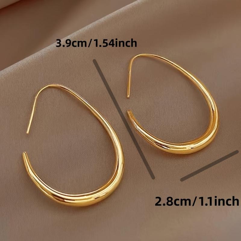 Elevate your look with these unique geometric drop shaped ear hoops that offer a high end feel while being lightweight. Inspired by Western designs, these oval hoops are perfect for any occasion.