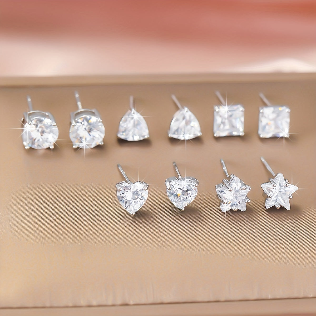 Add a touch of elegance with these stunning geometric stud earrings featuring sparkling zirconia stones. Crafted with hypoallergenic 925 silver posts, they are perfect for both casual attire and special occasions.