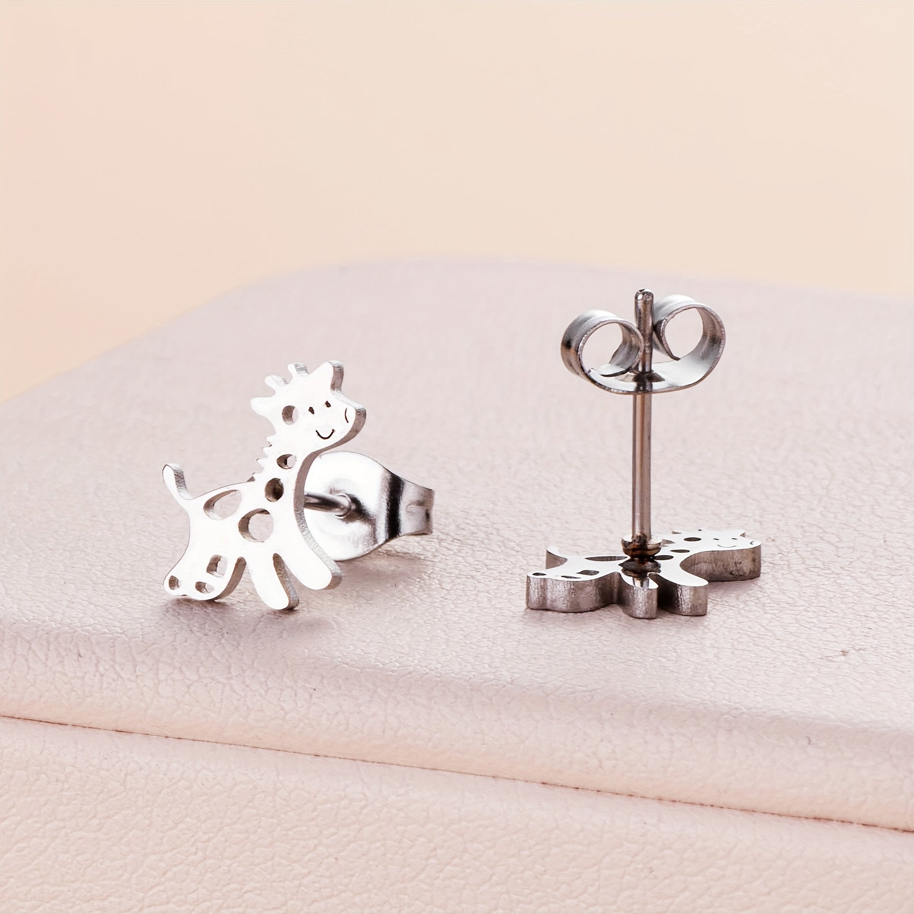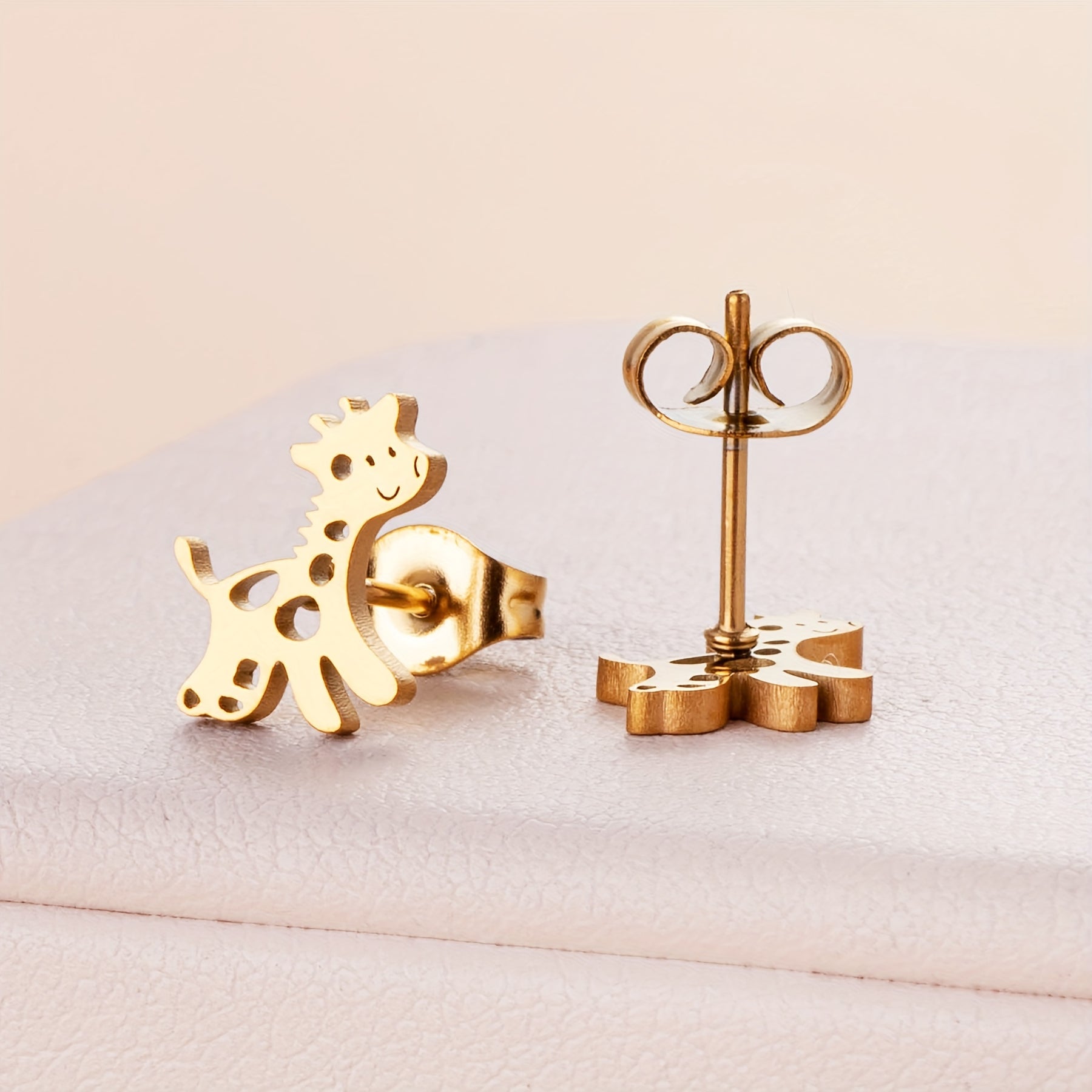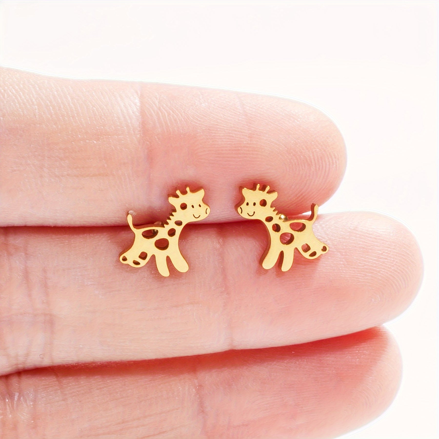 These giraffe-shaped ear studs are made of stainless steel, perfect for daily wear without causing allergies. Available in 1 pair (2pcs) or 3 pairs (6pcs).