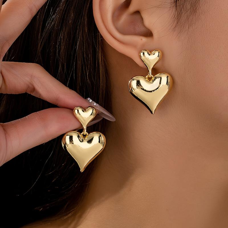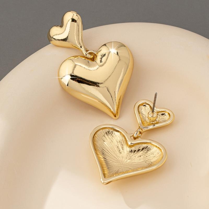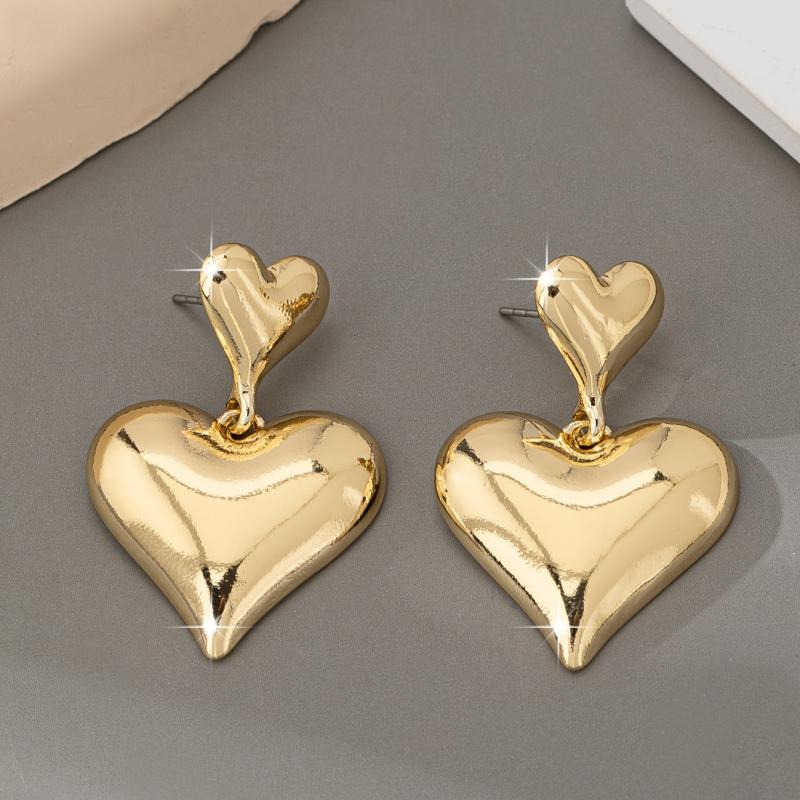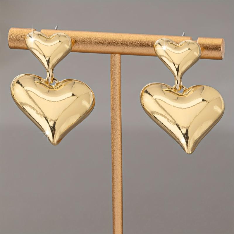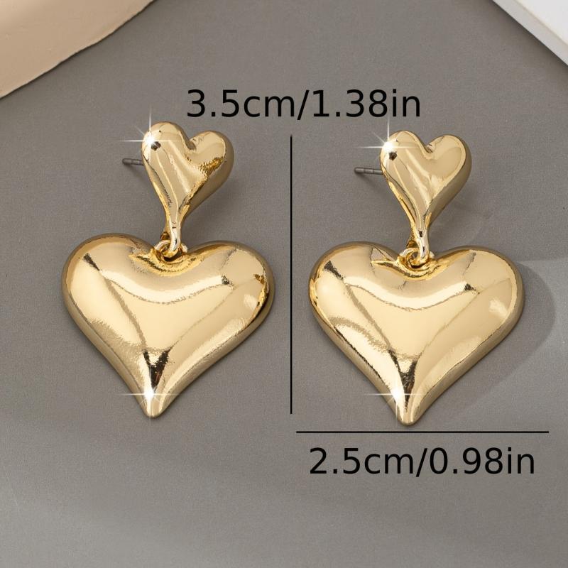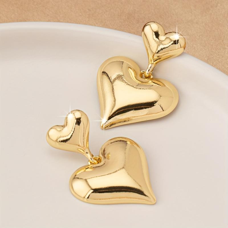 Add a touch of elegance with these golden heart drop earrings. Perfect for casual wear or parties, these earrings feature a smooth reflective finish that will elevate any outfit.