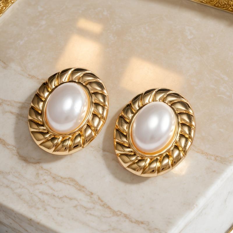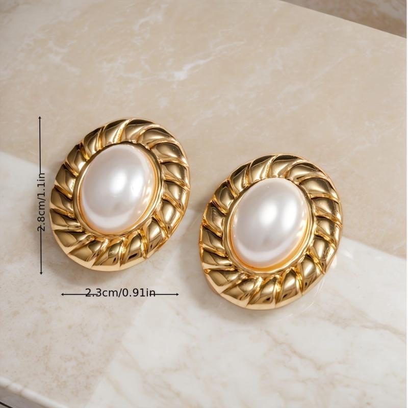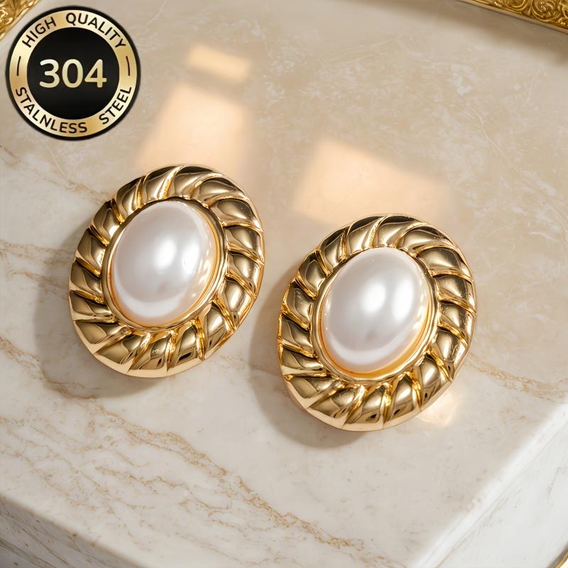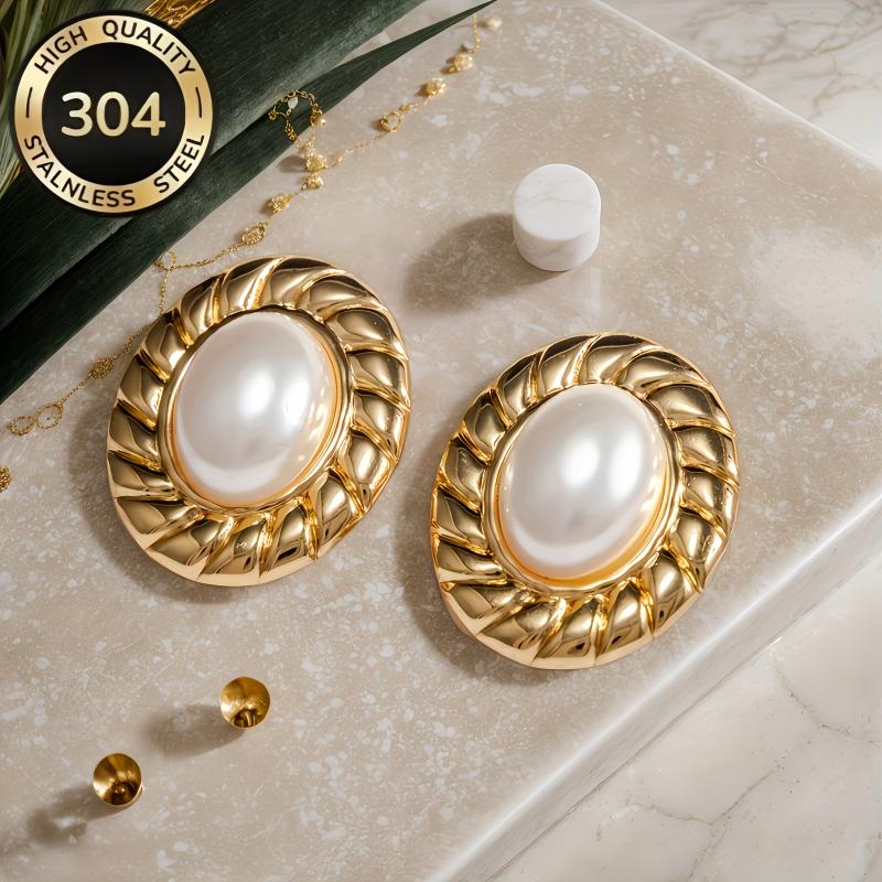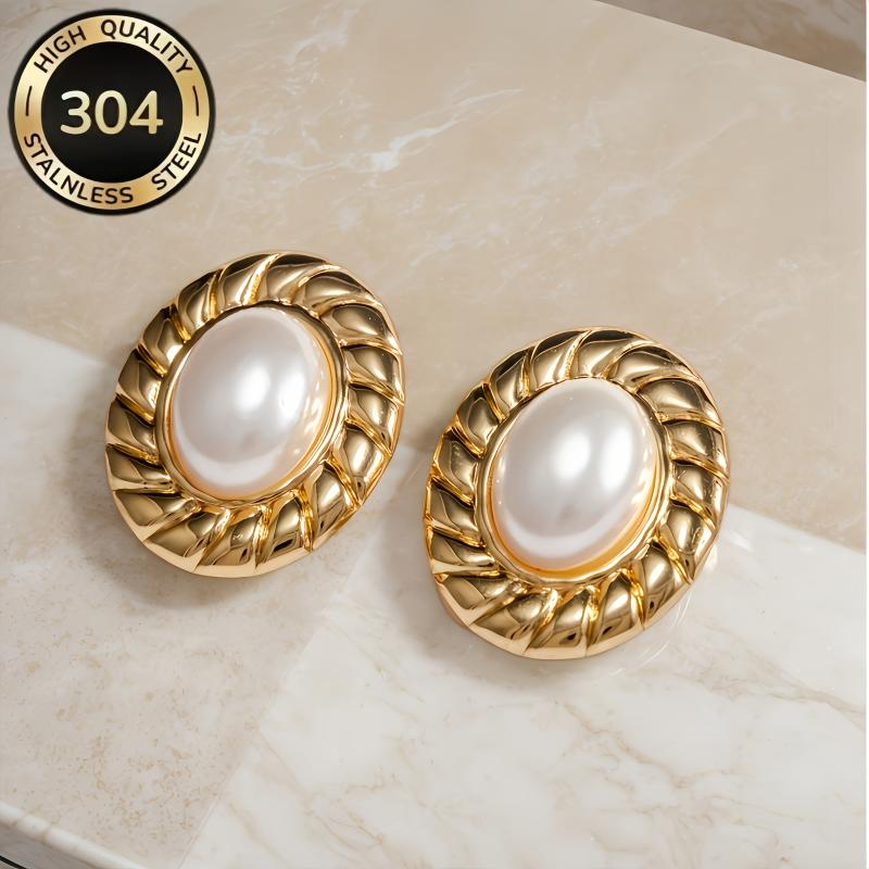 Golden Stainless Steel Earrings with Faux Pearl Accents
