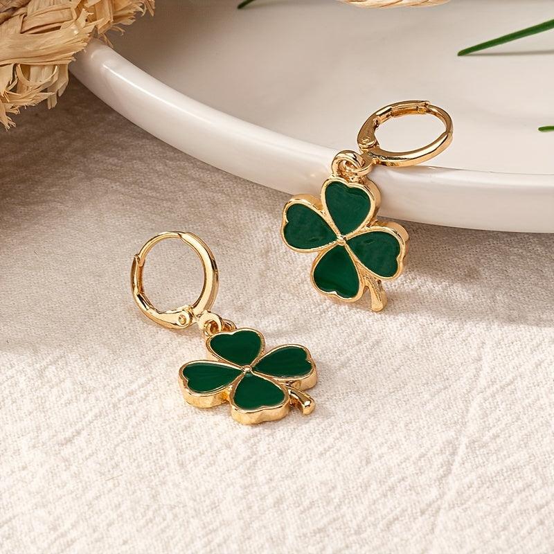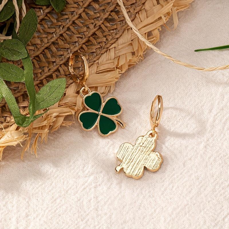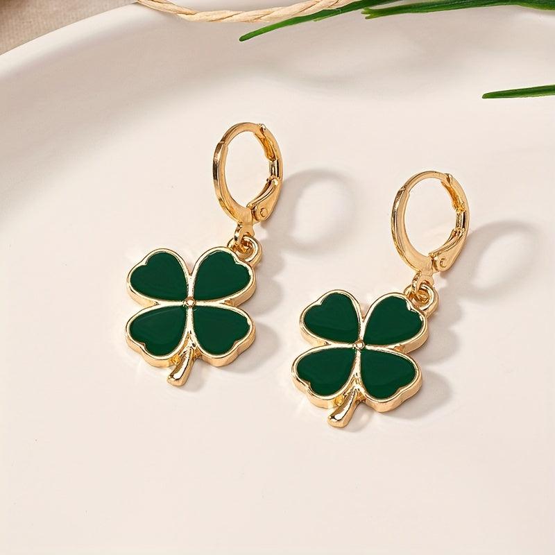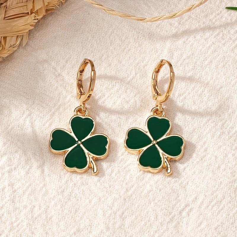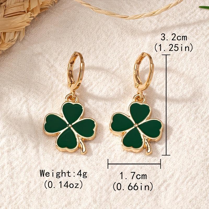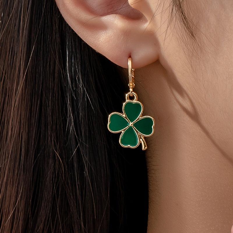 These green enamel clover dangle earrings are the perfect lucky charm inspired by St. Patrick's Day. They make a wonderful gift for anyone looking to add a touch of luck to their outfit.