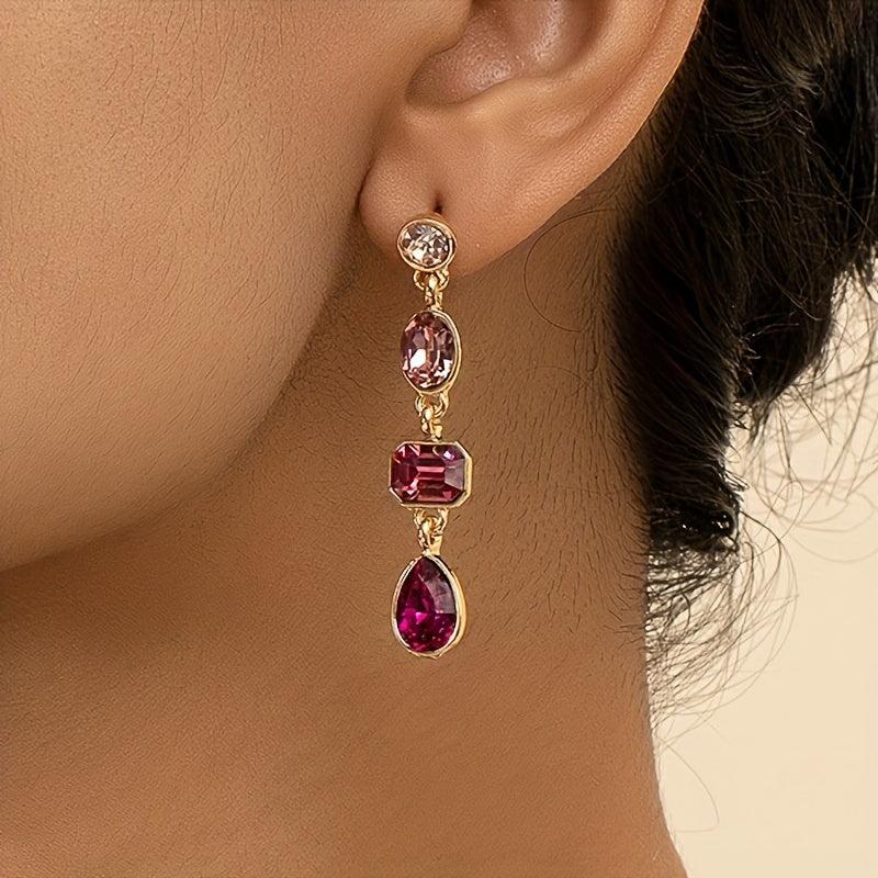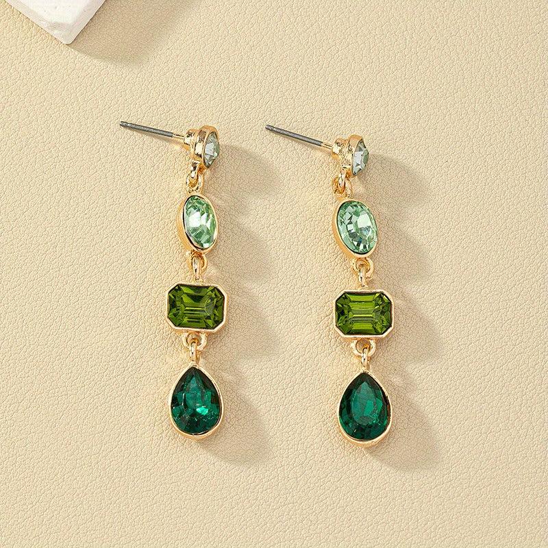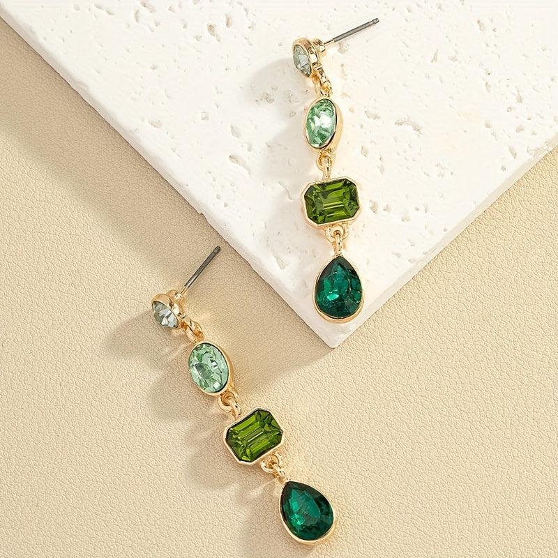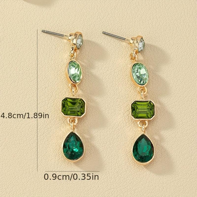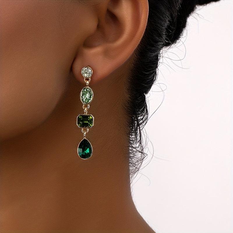 These retro gradient green rhinestone dangle earrings are made of alloy with stainless steel ear hooks. They are a stylish and elegant accessory for any outfit.