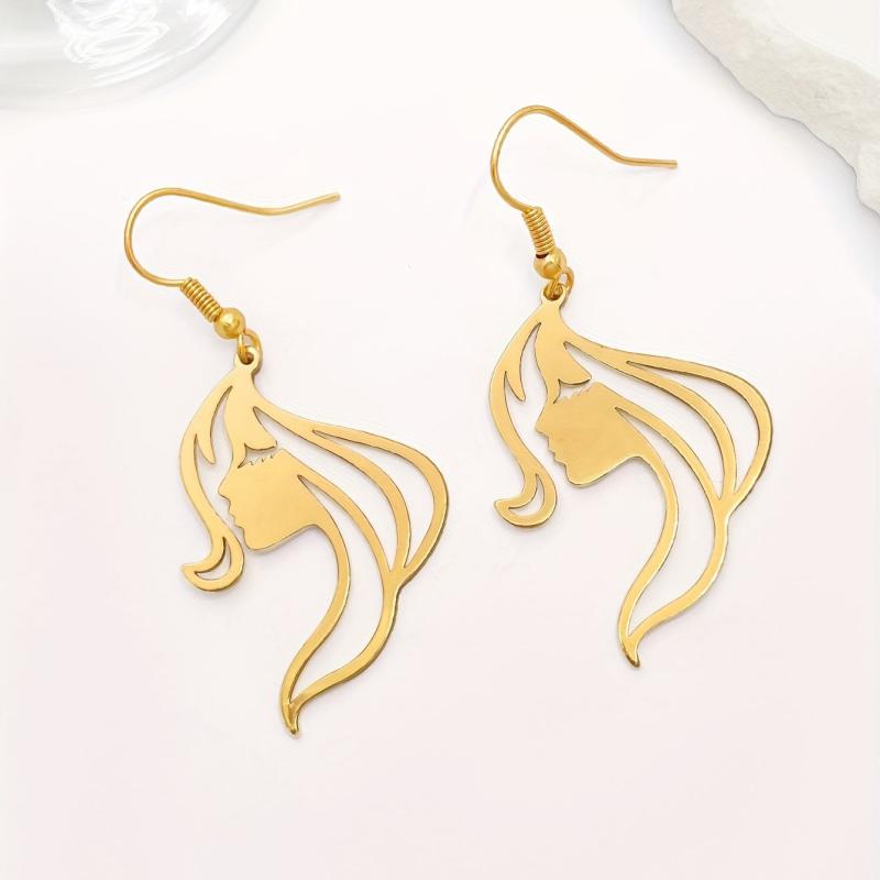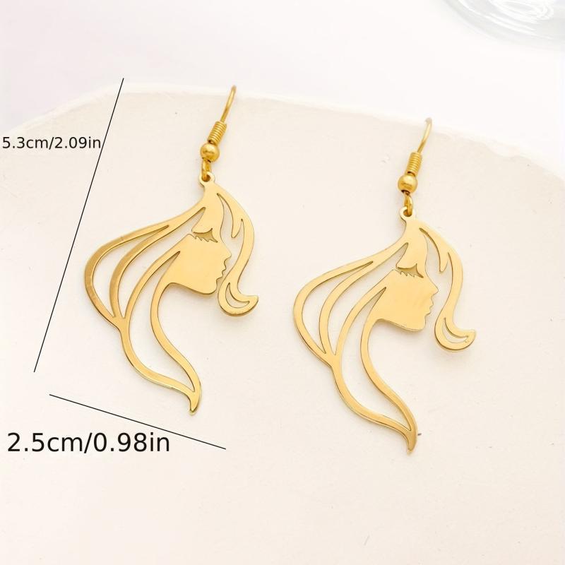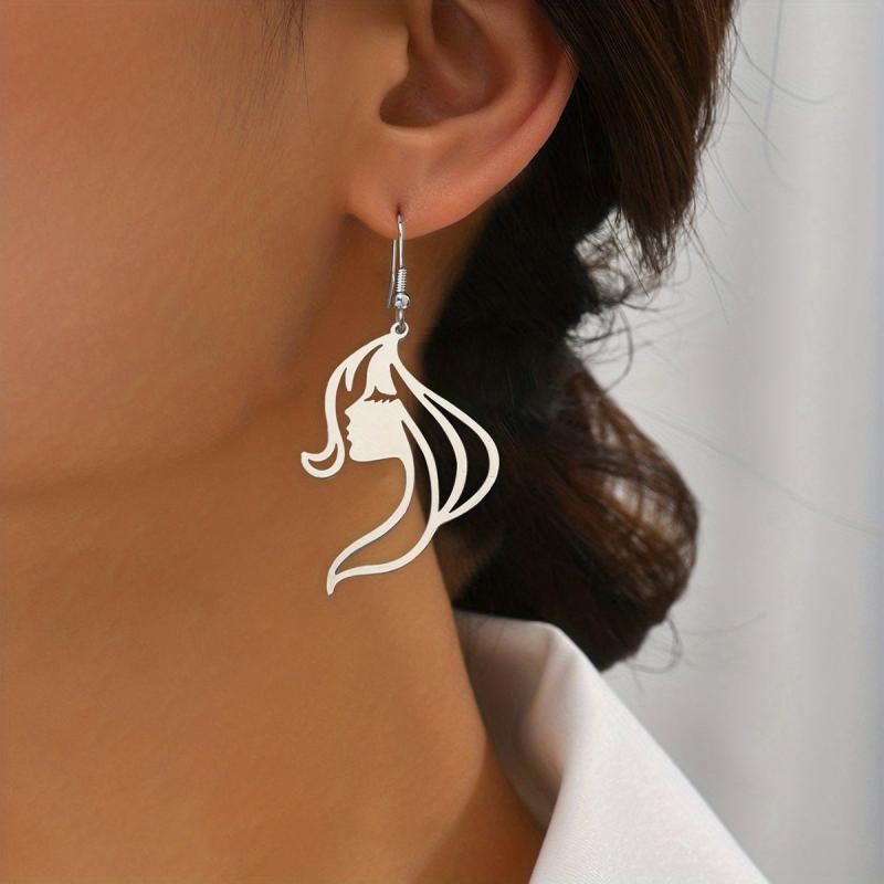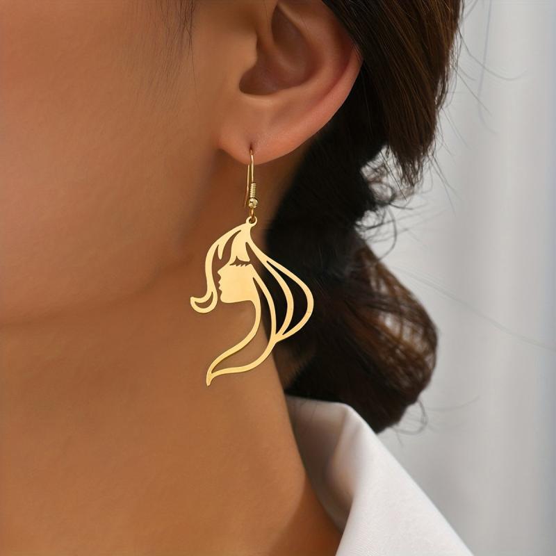 Elegant and stylish dangle earrings featuring a female face design, perfect as a gift for women and girls.