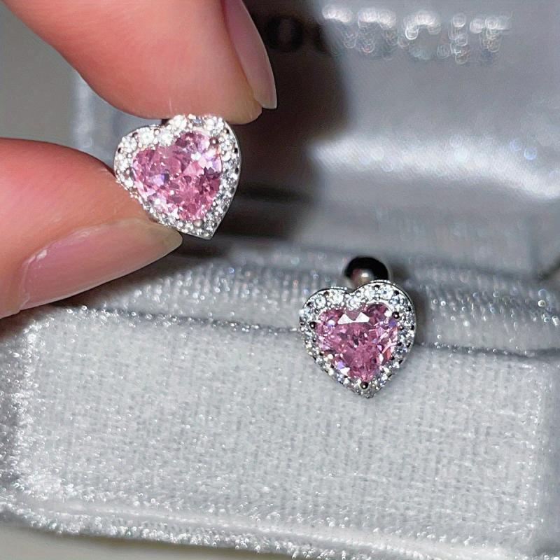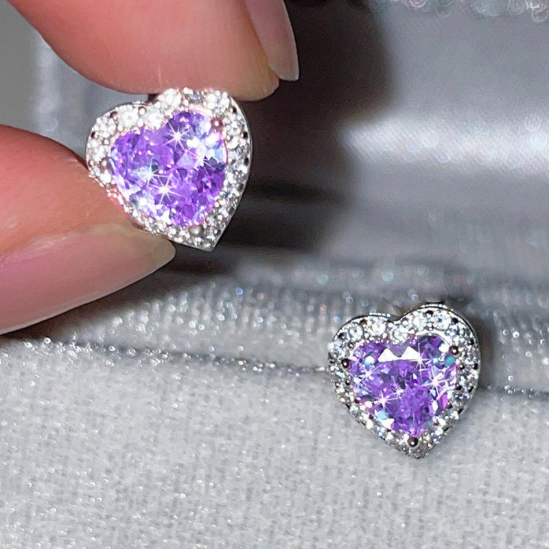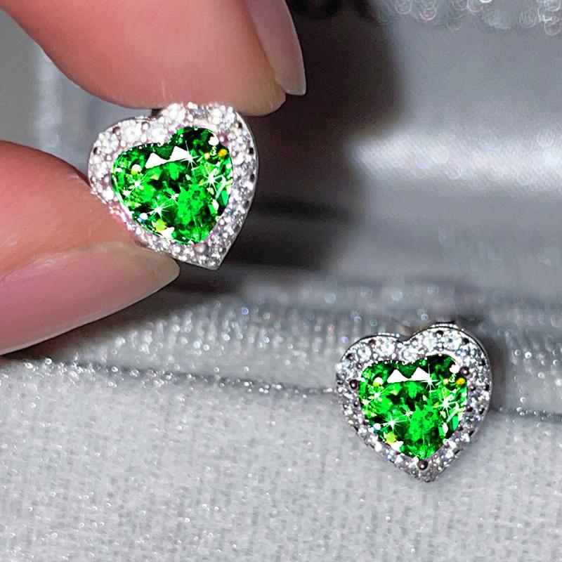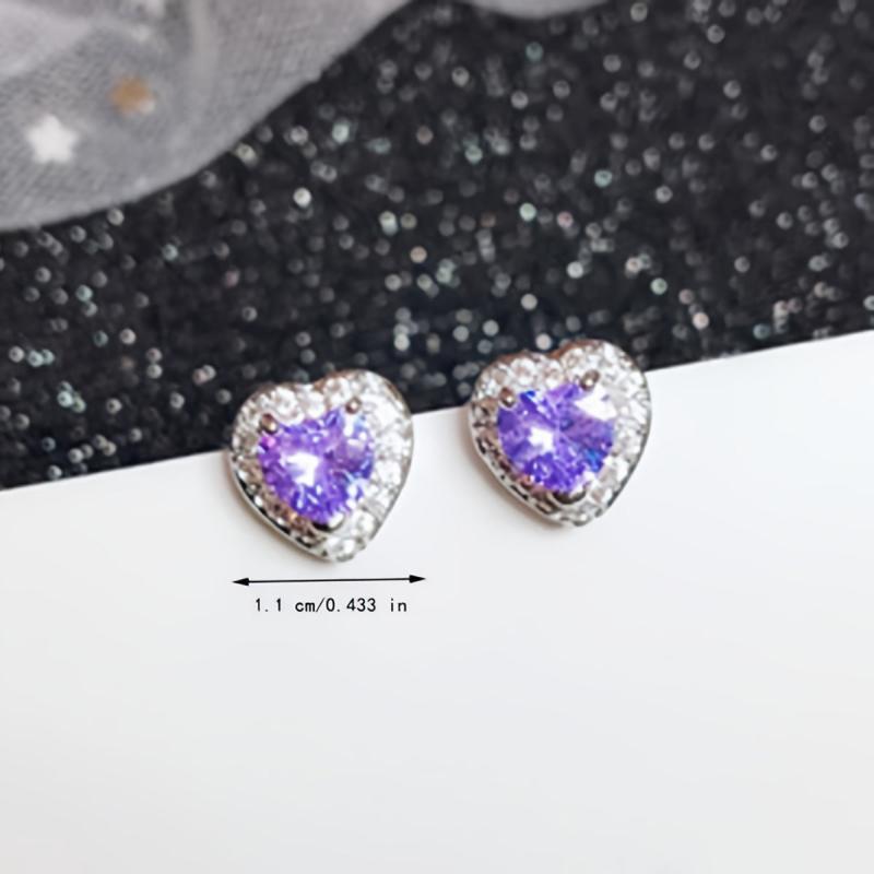 Heart Shaped CZ Birthstone Stud Earrings Copper Base - Ideal for Daily Wear
