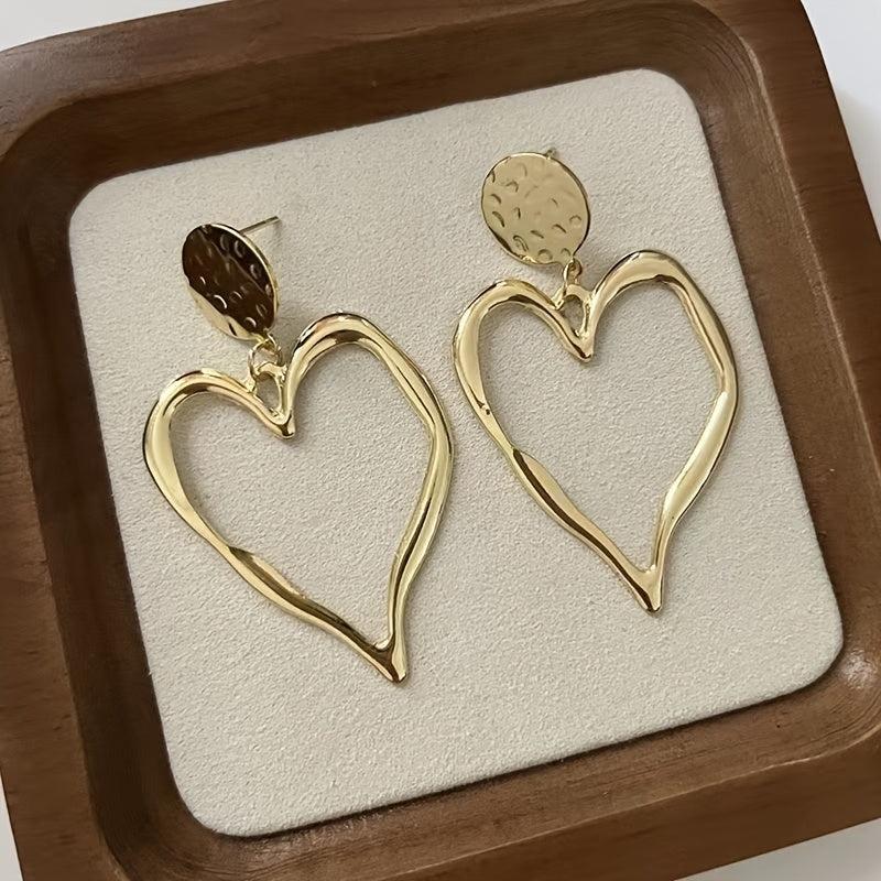 Add a touch of romance to your look with these zinc alloy heart shaped earrings. Perfect for vacation or casual wear.