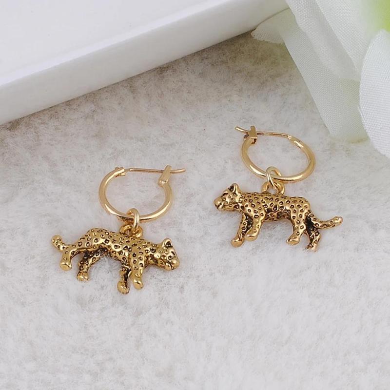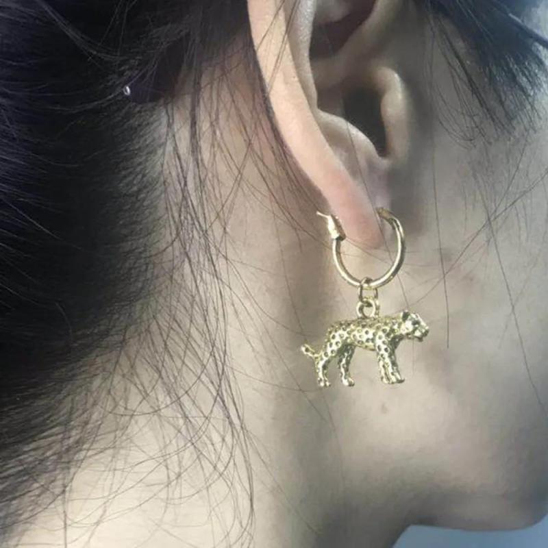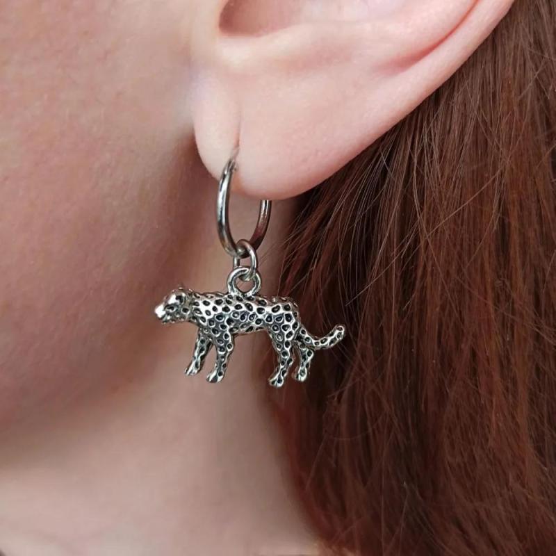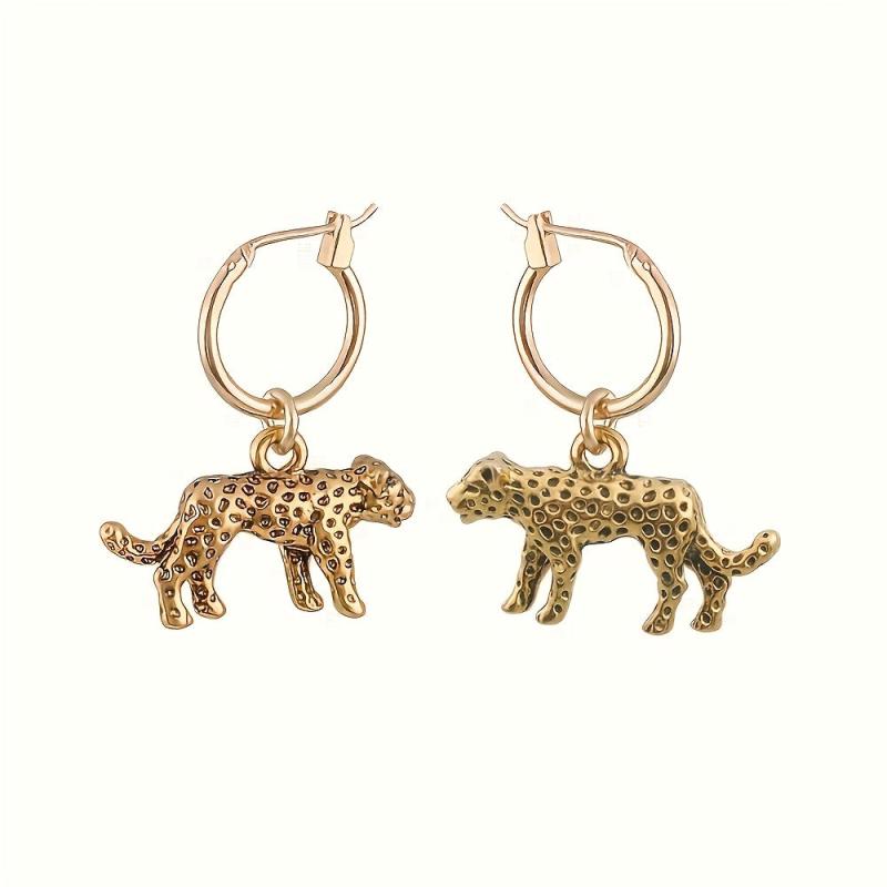 Leopard Hoop Earrings with Pendant Vintage Inspired Jewelry
