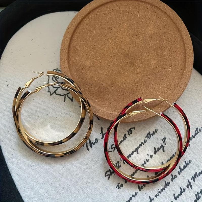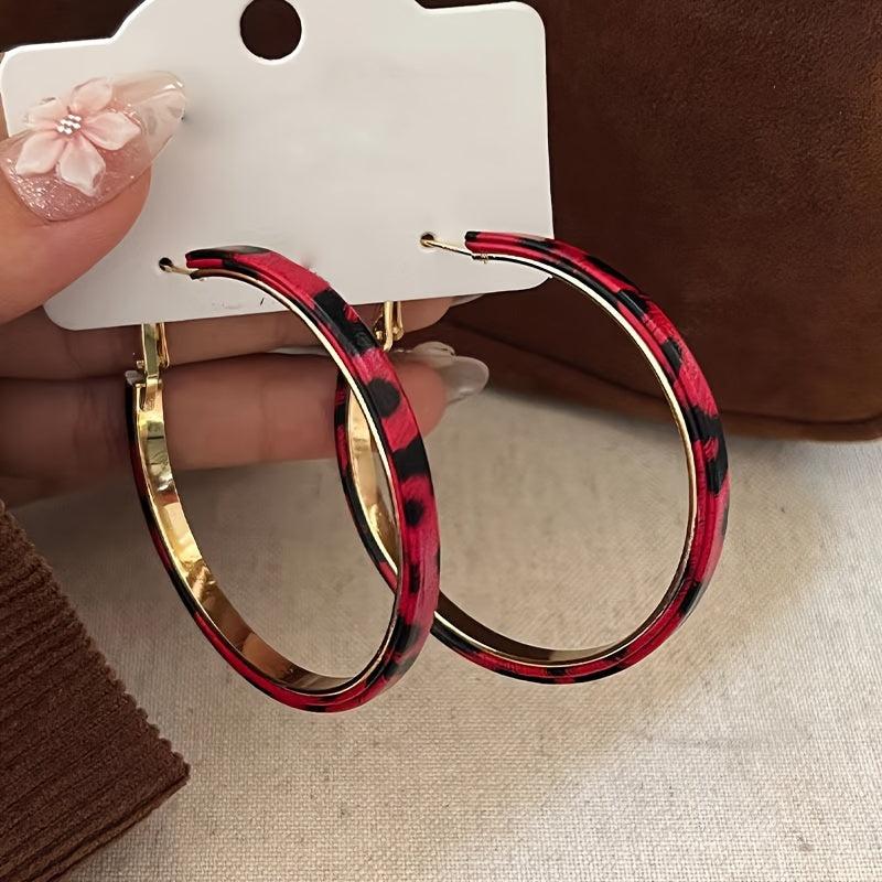Add a touch of vintage charm to your outfit with these faux leather leopard print hoop earrings. Perfect for daily wear or as a thoughtful gift for Thanksgiving.