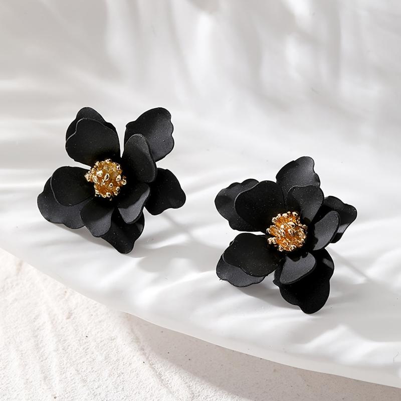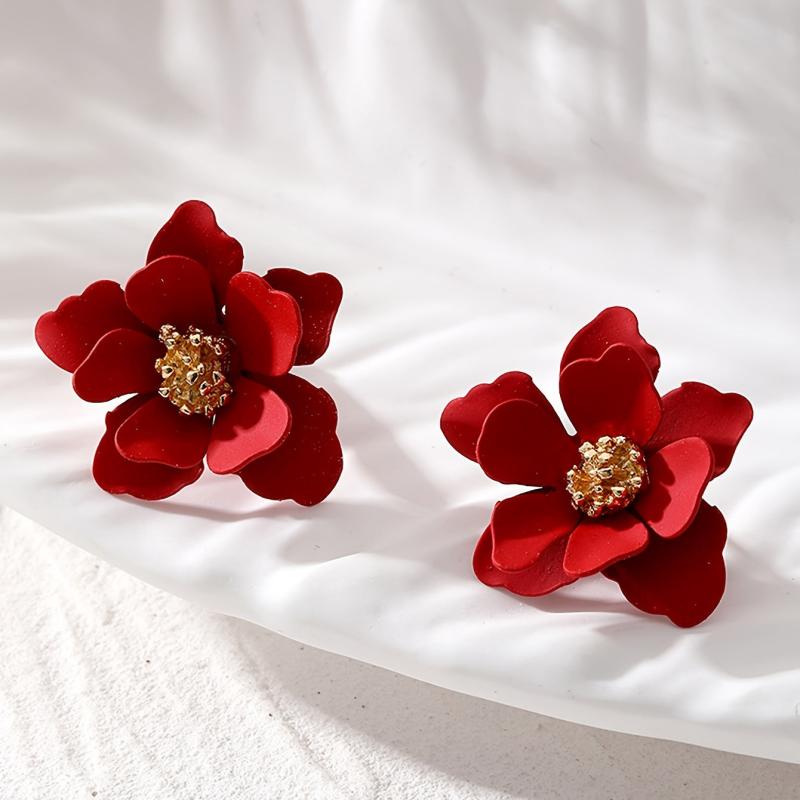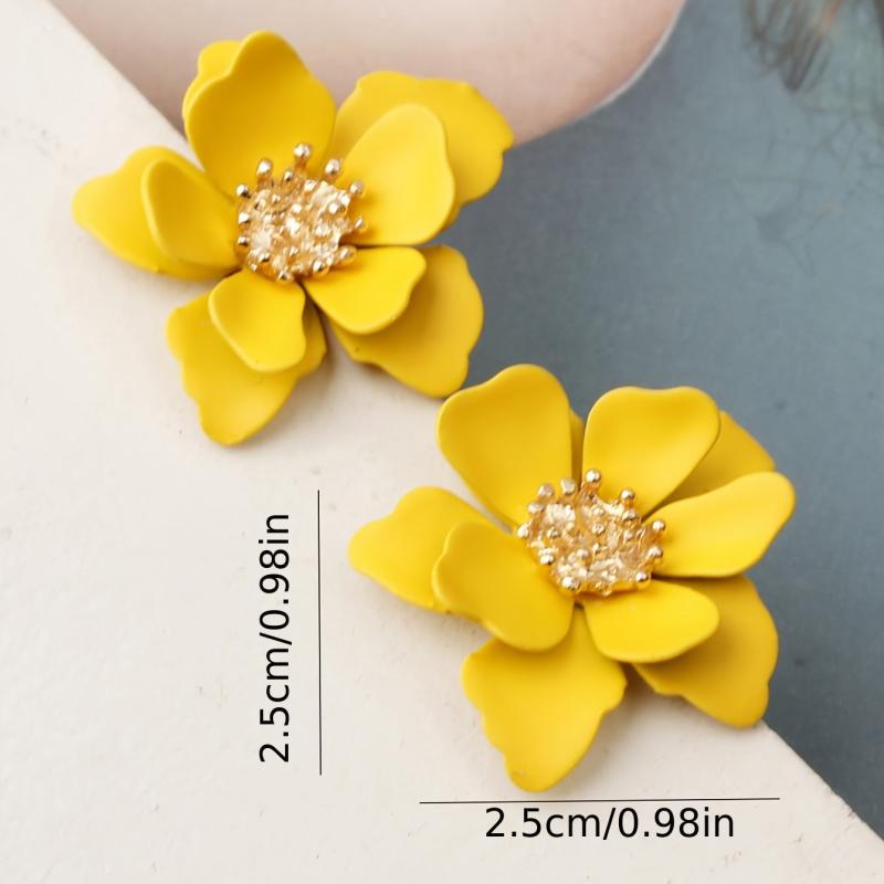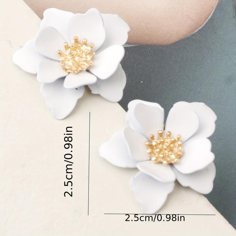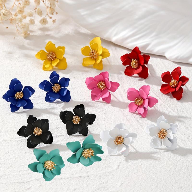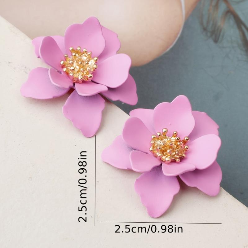 These stylish stud earrings feature a matte flower design, made of zinc alloy with a stainless steel post. Ideal for daily wear and vacation outfits. Great gift for Valentine's Day.
