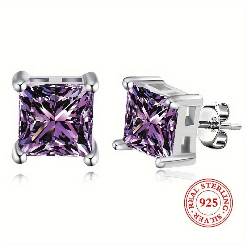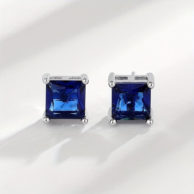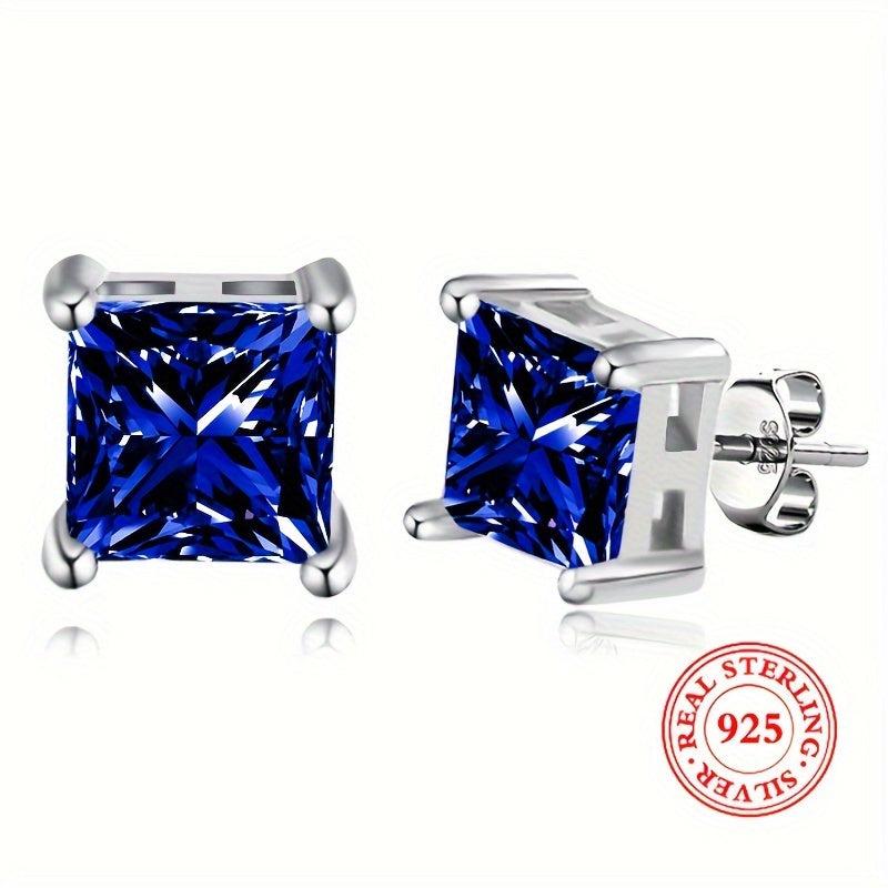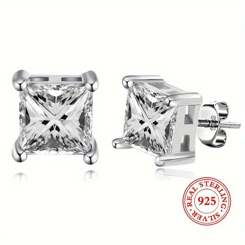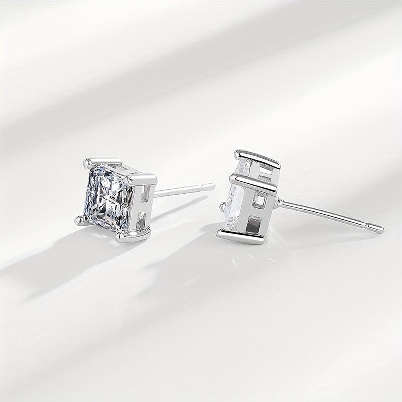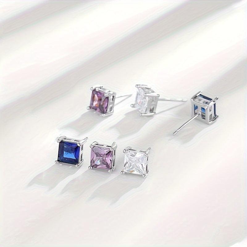 These geometric square earrings feature Synthetic Zirconia stones set in 925 silver, ideal for daily wear. They weigh only 2g and are designed for low allergy sensitivity.