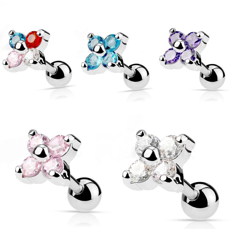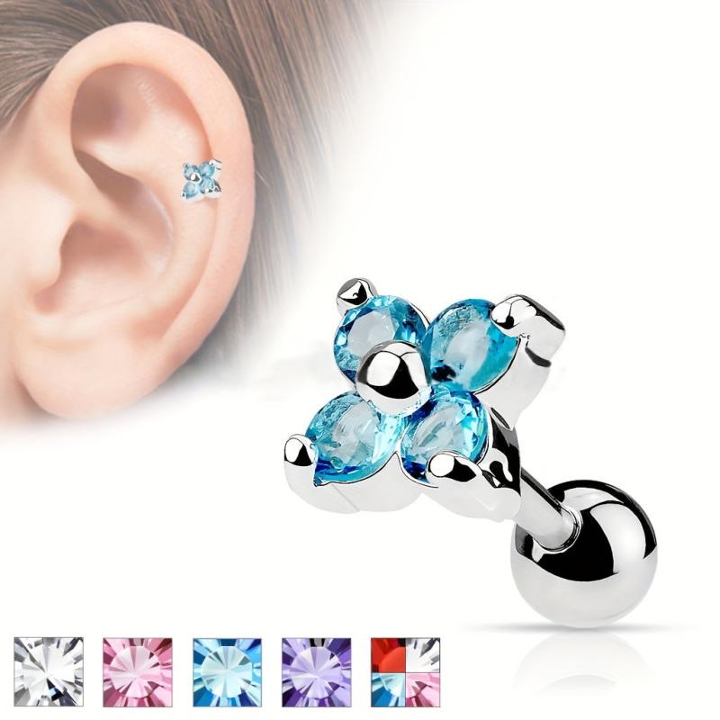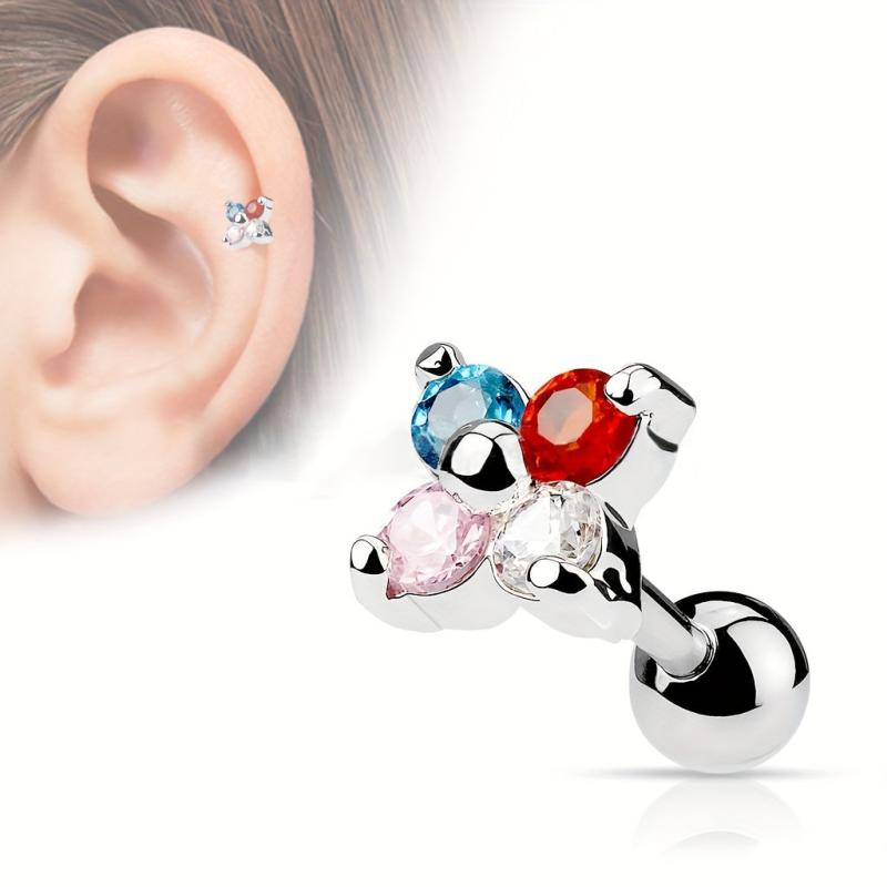 Add a pop of color to your look with these stunning multicolor four-petal flower cubic zirconia stud earrings. Perfect for daily wear or parties, these earrings are sure to make a statement.