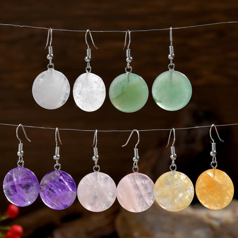 These bohemian earrings are crafted from natural stone, featuring round gemstones in a dangle design. They are available in 10 different colors, making them the perfect summer casual jewelry for women. A great gift for mothers or for daily wear.