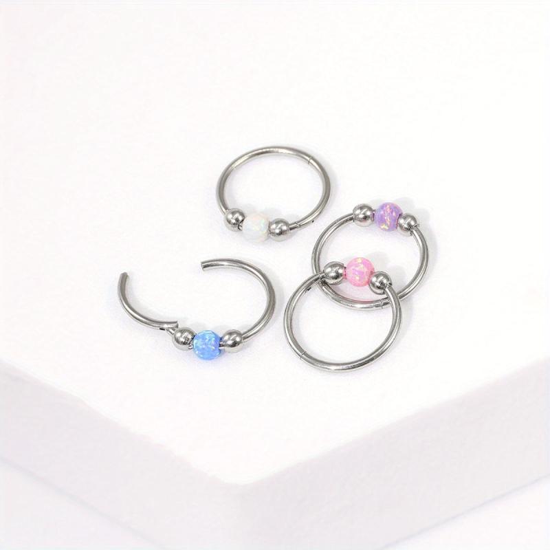 Opal Nose Ring Septum Earrings Set Pink Purple Balls