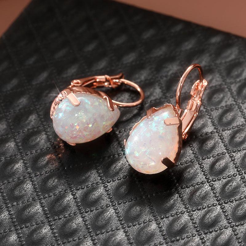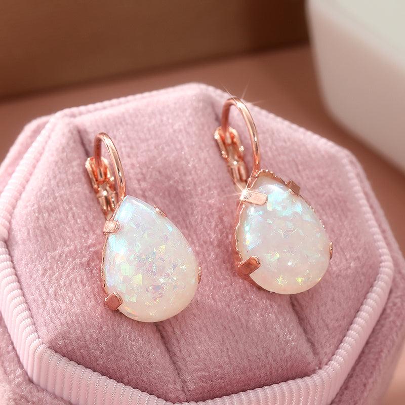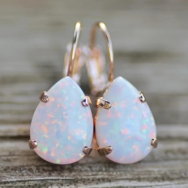 Add a touch of elegance to your look with these vintage style rose gold water droplet earrings featuring opal accents.