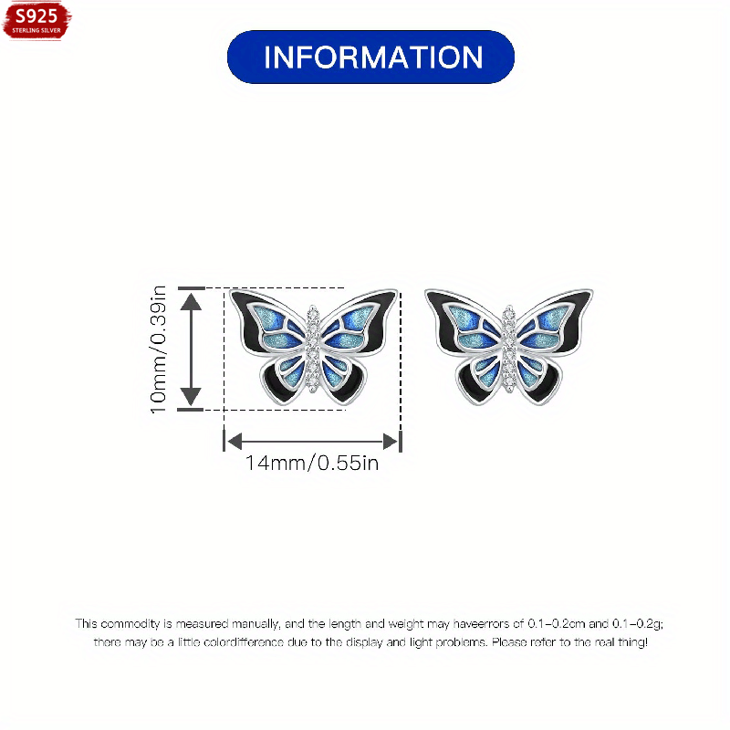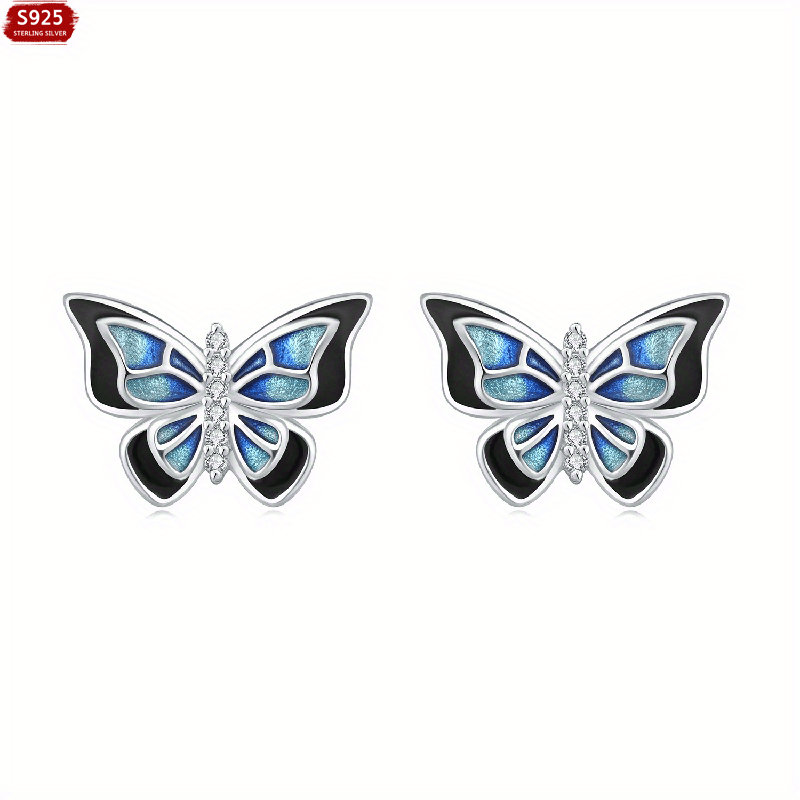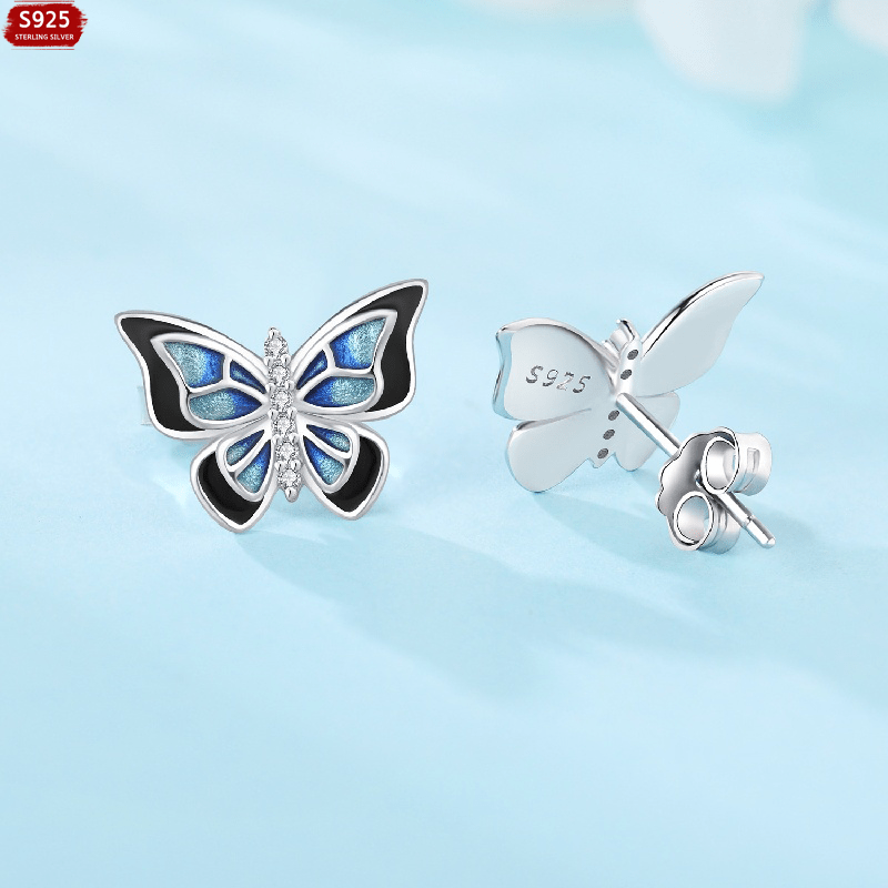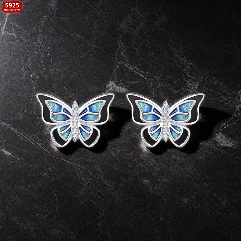 PANPOKI S925 Silver Butterfly Earrings Gradient Animal Insect Unique Style