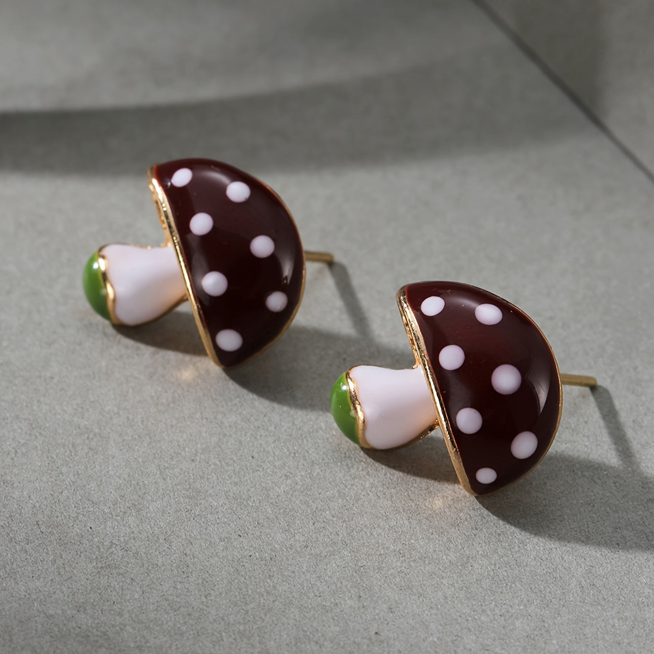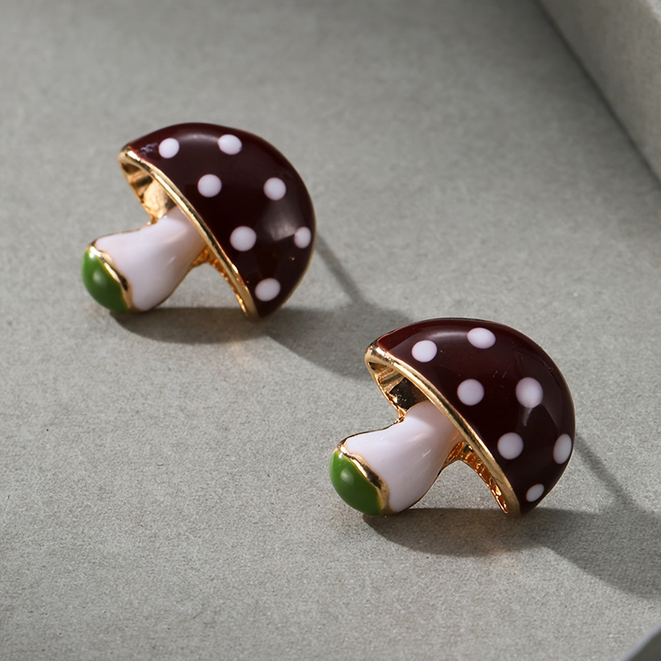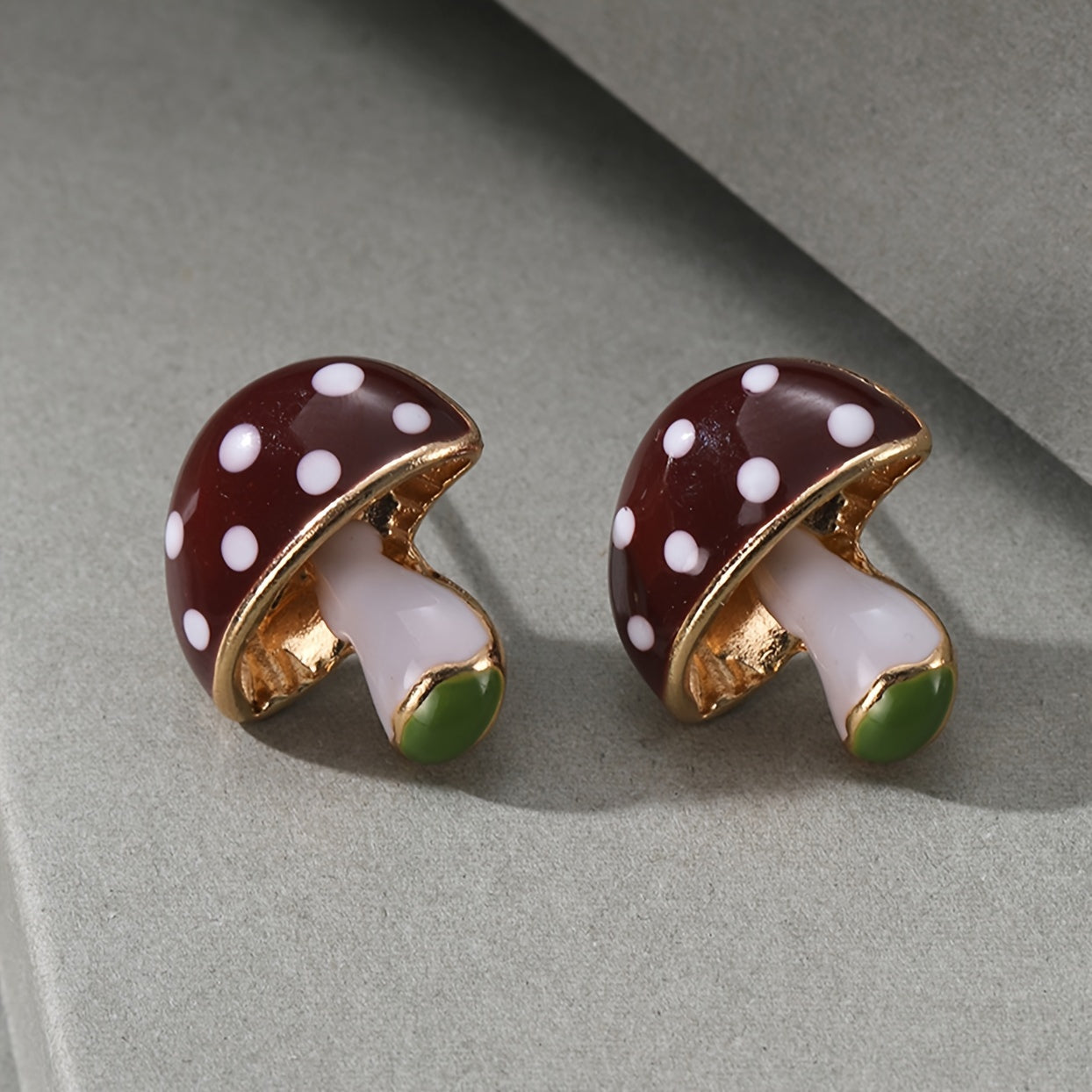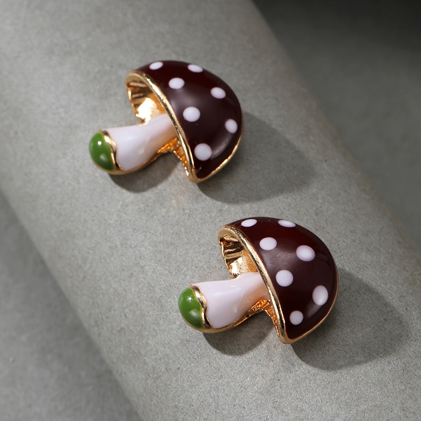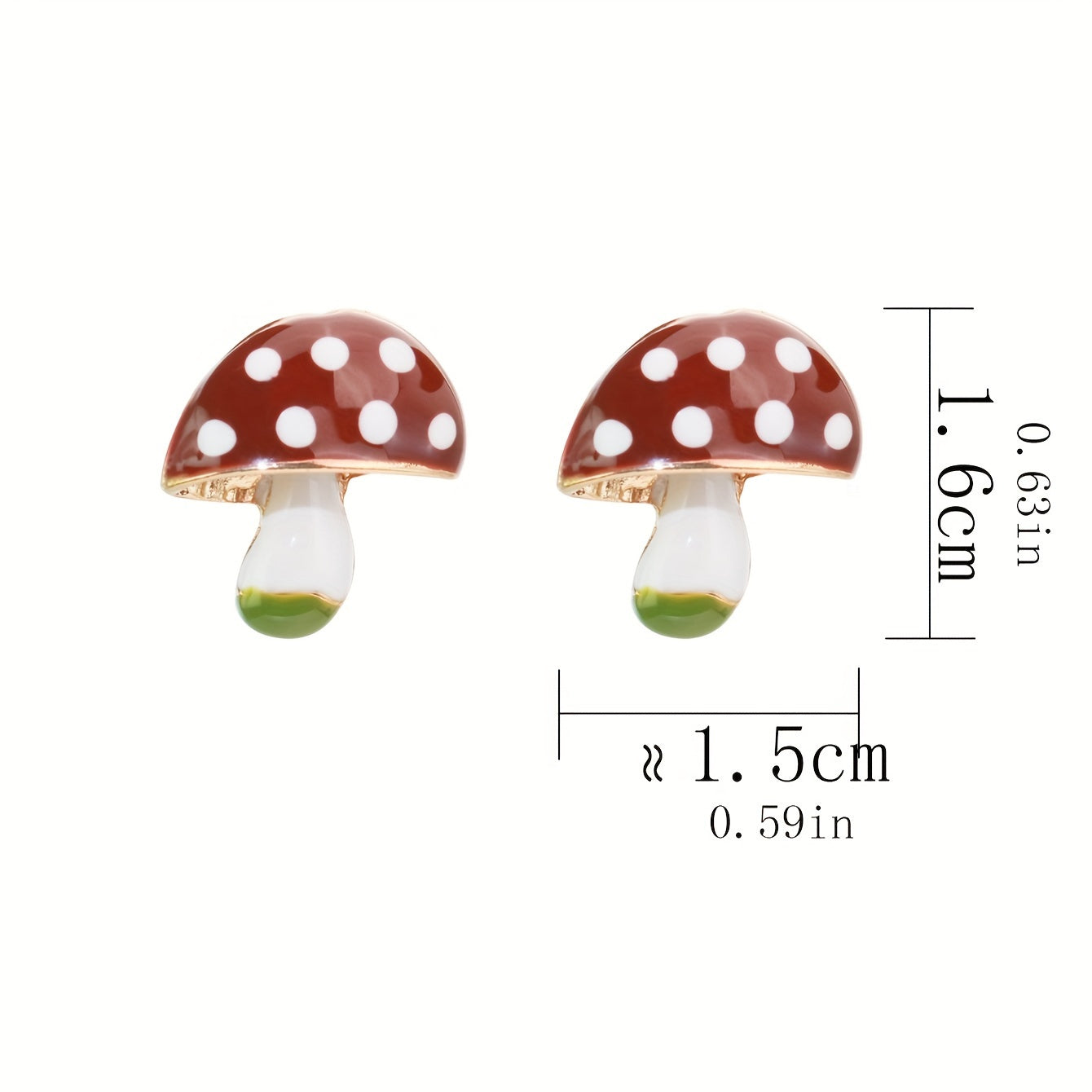 Add a touch of whimsical charm to your outfit with these vacation-themed mushroom stud earrings. Featuring enamel detailing and crafted from zinc alloy, these earrings are perfect for daily wear or parties.