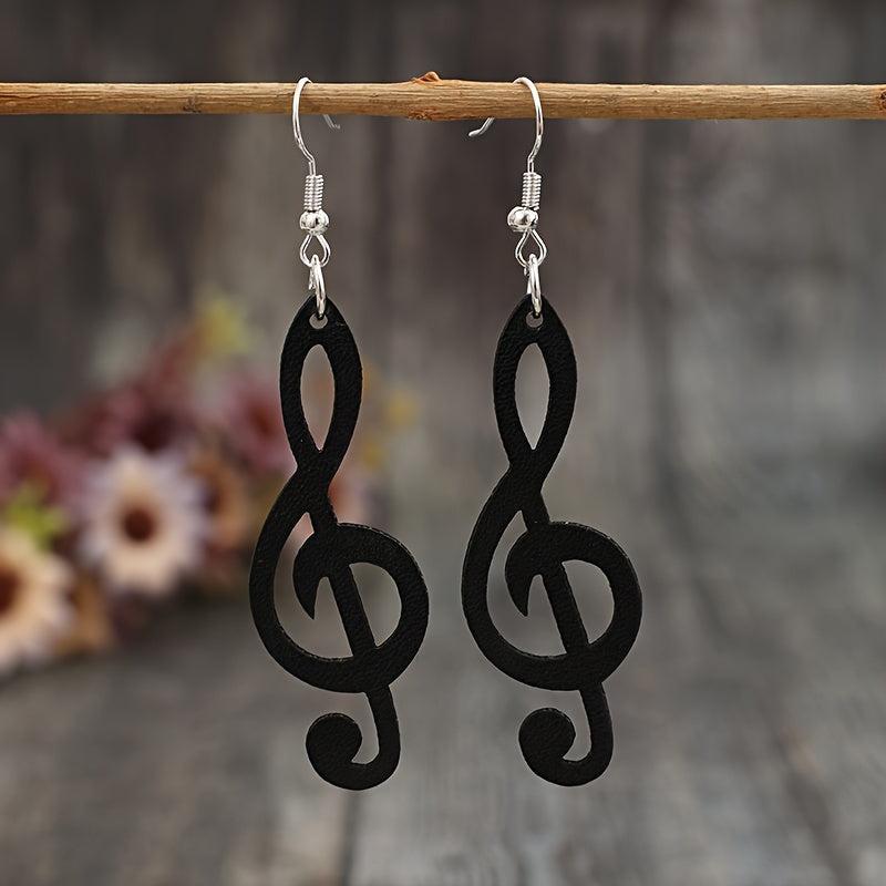 PU Leather Music Note Earrings Vintage Style Treble Clef Hook Earrings