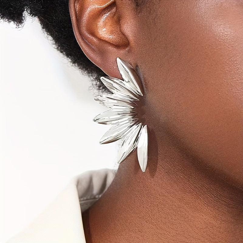Add a touch of punk to your outfit with these fan-shaped earrings. Made of iron with an exaggerated design, these earrings are perfect for making a statement.