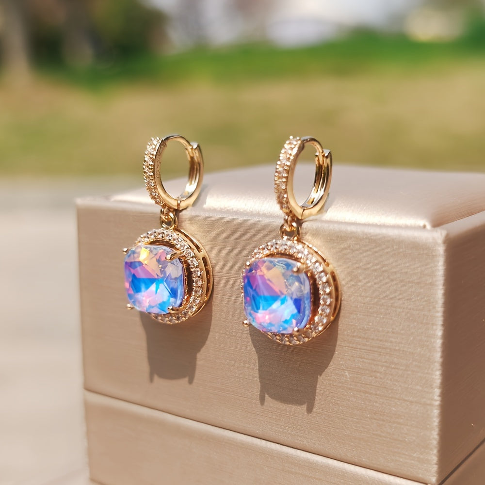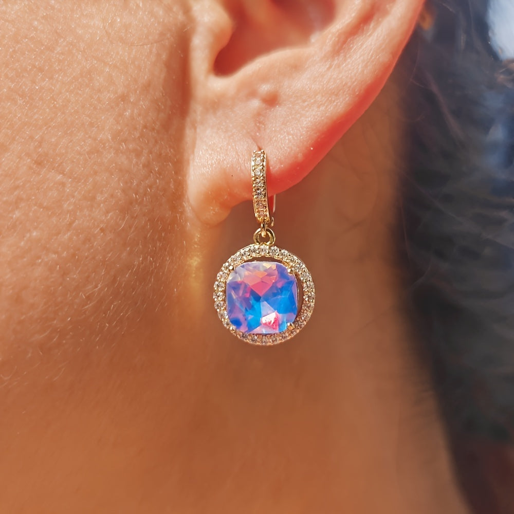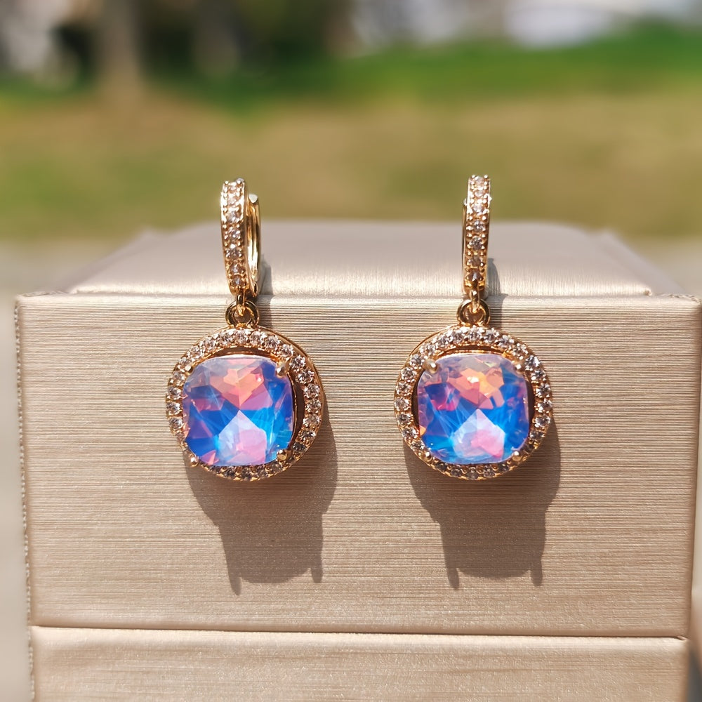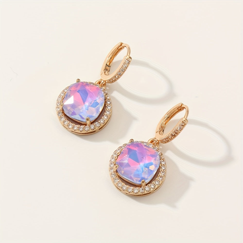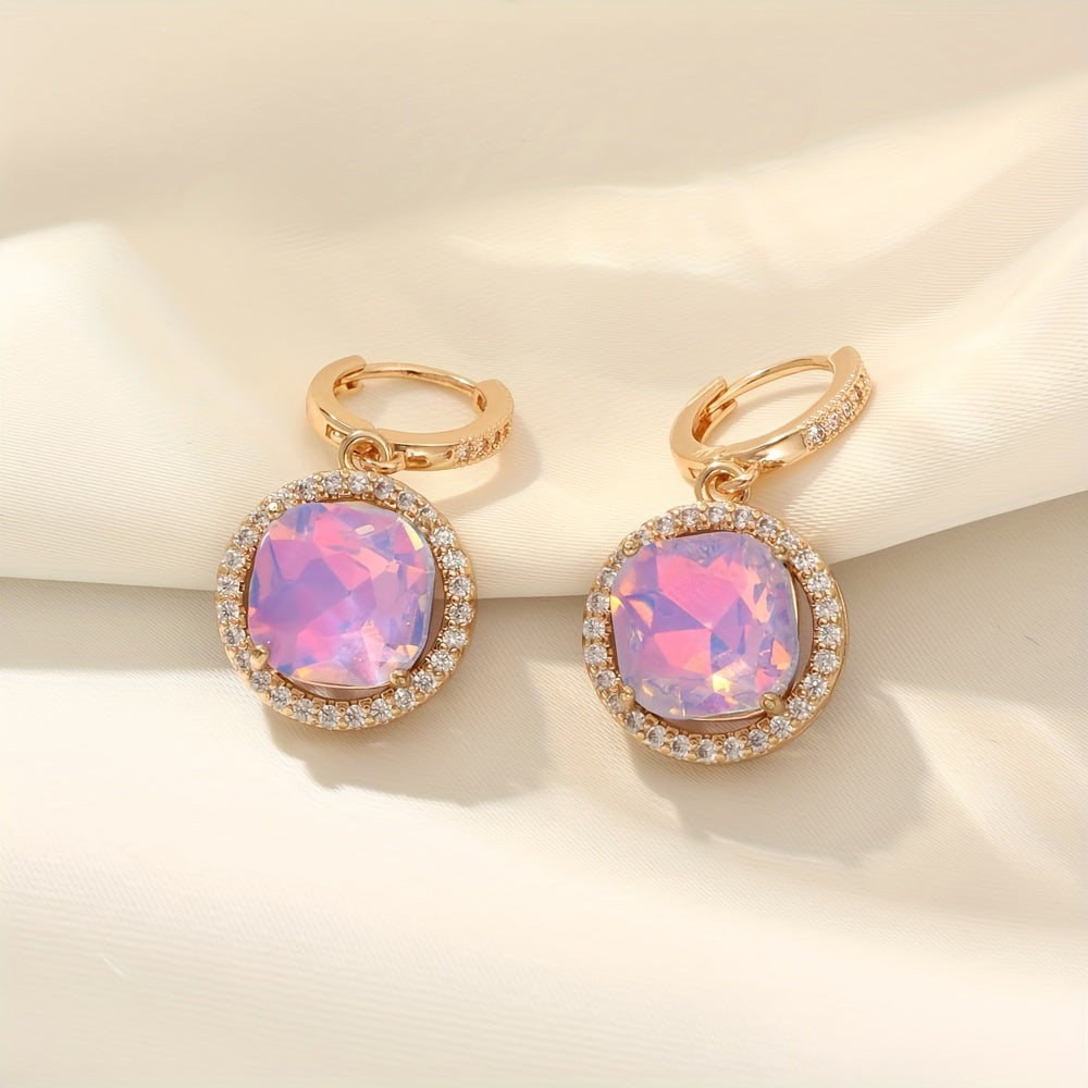 Purple CZ Dangle Earrings Women Wedding Jewelry