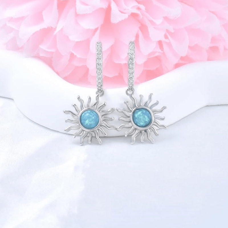 Elevate your vacation or party look with these stunning dangle earrings featuring a sun pendant and synthetic turquoise. Made with copper nickel plating, these earrings are perfect for adding a touch of boho chic to your outfit.