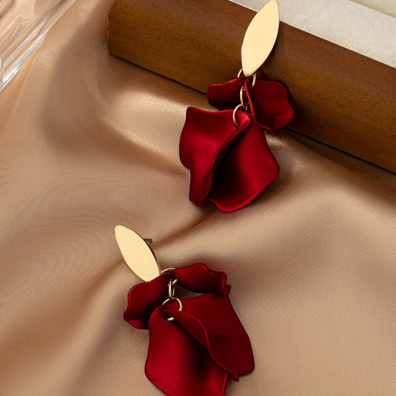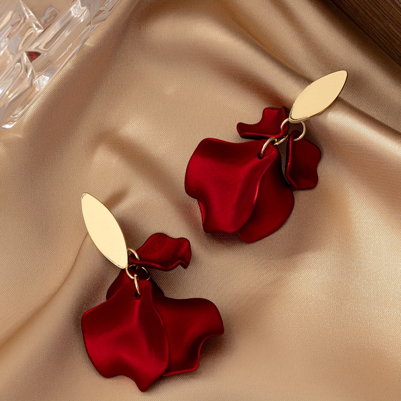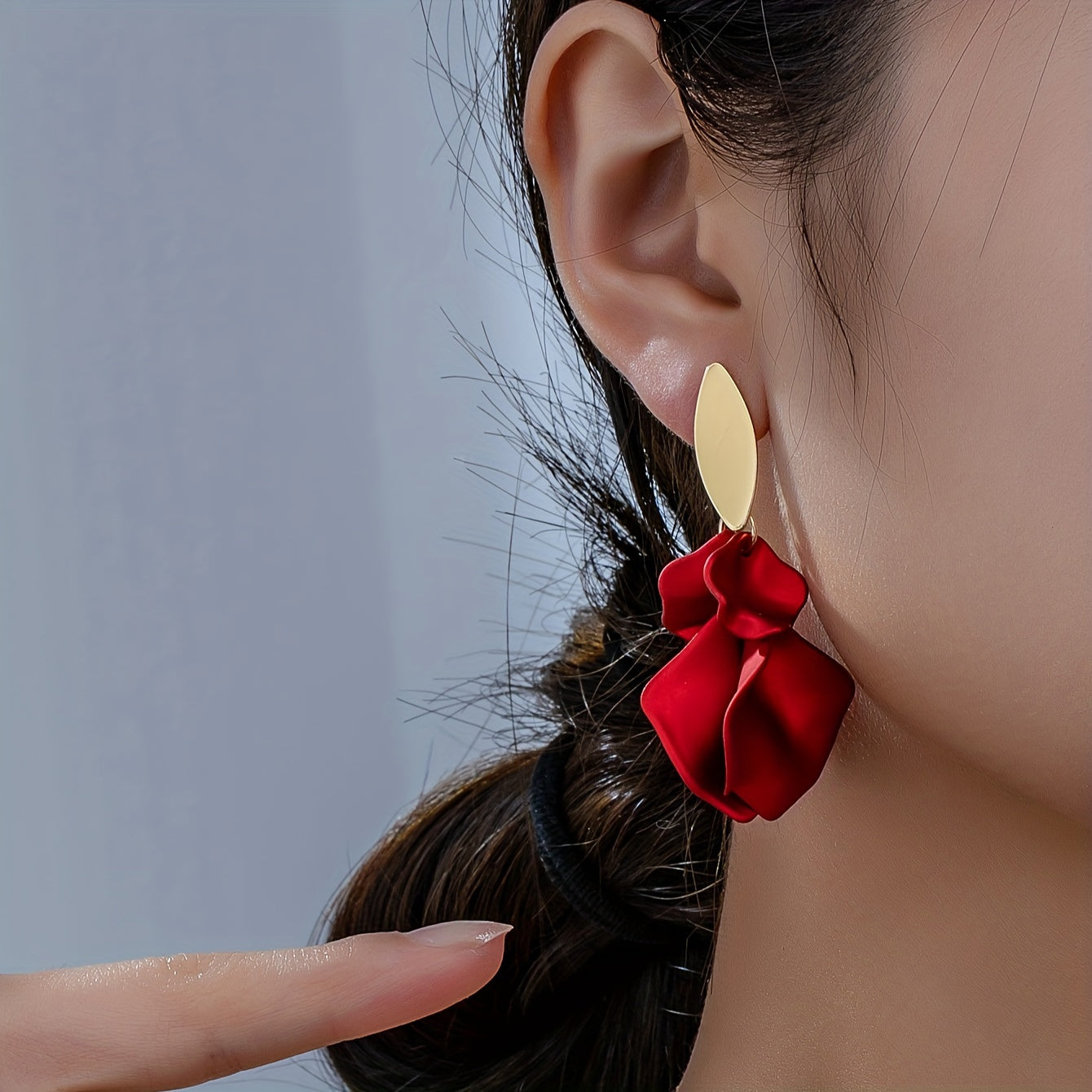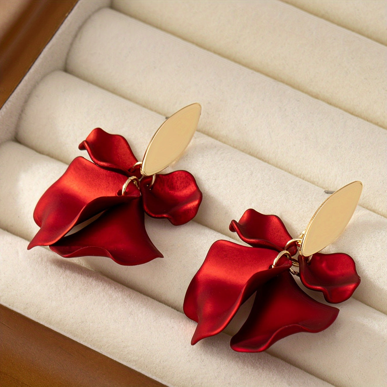 Add a touch of vintage glamour to your look with these stunning red acrylic flower drop earrings featuring golden tone accents. Perfect for parties, holidays, Mother's Day, and everyday casual wear.