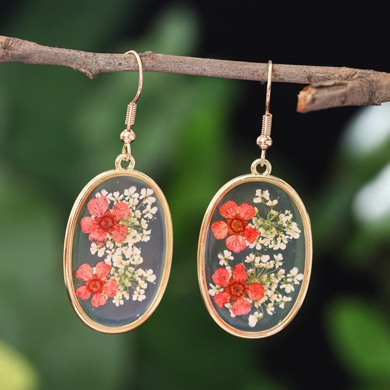 Add a touch of elegance to your look with these beautiful red flower drop earrings. Perfect for daily wear, parties, prom, or vacation. A thoughtful gift for a special woman in your life.