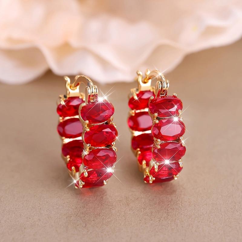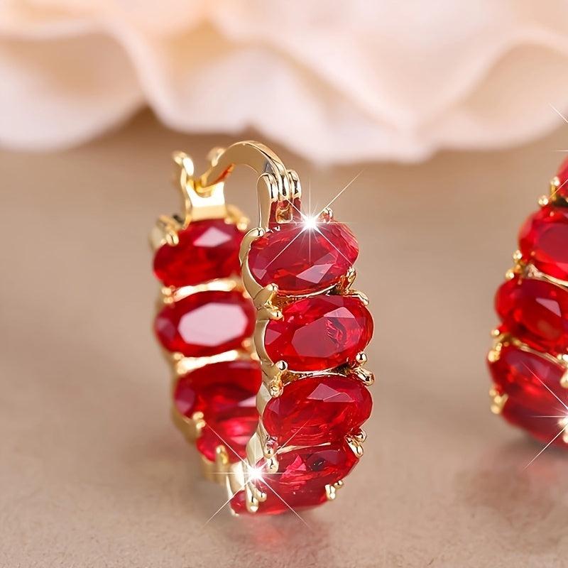 These stunning hoop earrings feature red square glass accents that add a pop of color to any outfit. Made of copper with nickel plating, these earrings are perfect for daily wear and parties. They also make an ideal gift for January birthdays.