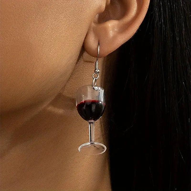 These fun earrings feature a liquid red wine glass dangle design, perfect for your next party or celebration. Bring some Y2K vibes to your outfit with these unique earrings.
