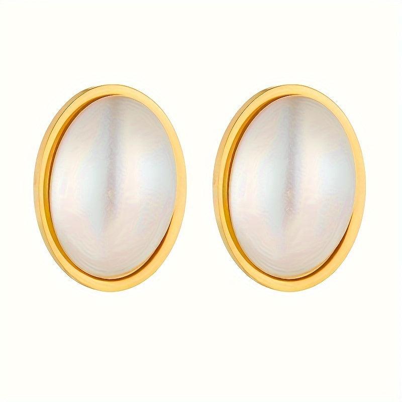 Resin Inlaid Stainless Steel Earrings Golden Plated Jewelry