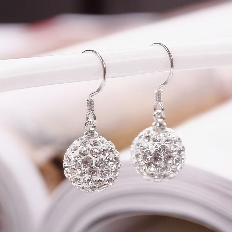 Shine with these exquisite rhinestone ball dangle earrings, handcrafted with soft pottery material and copper hooks. Ideal for daily wear or special occasions.