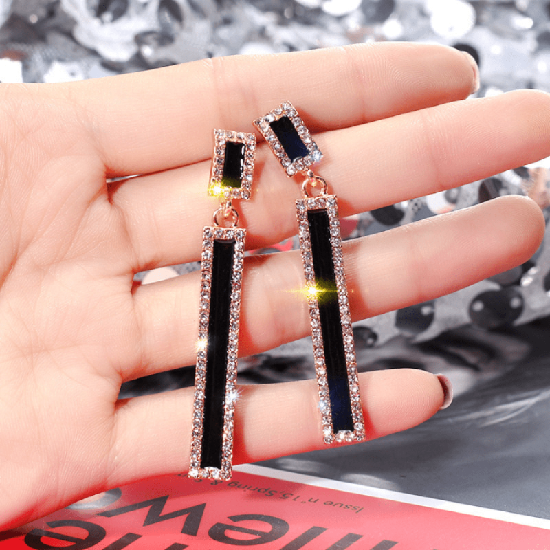 Elevate your everyday look with these glamorous dangle earrings featuring sparkling rhinestone accents. Perfect for weddings, anniversaries, and special occasions.