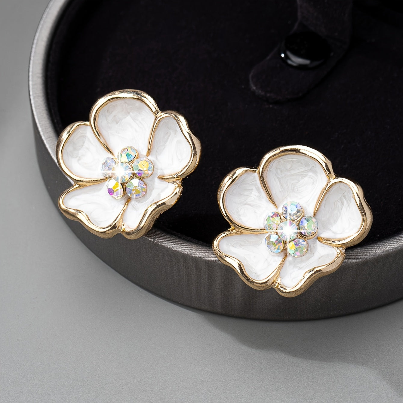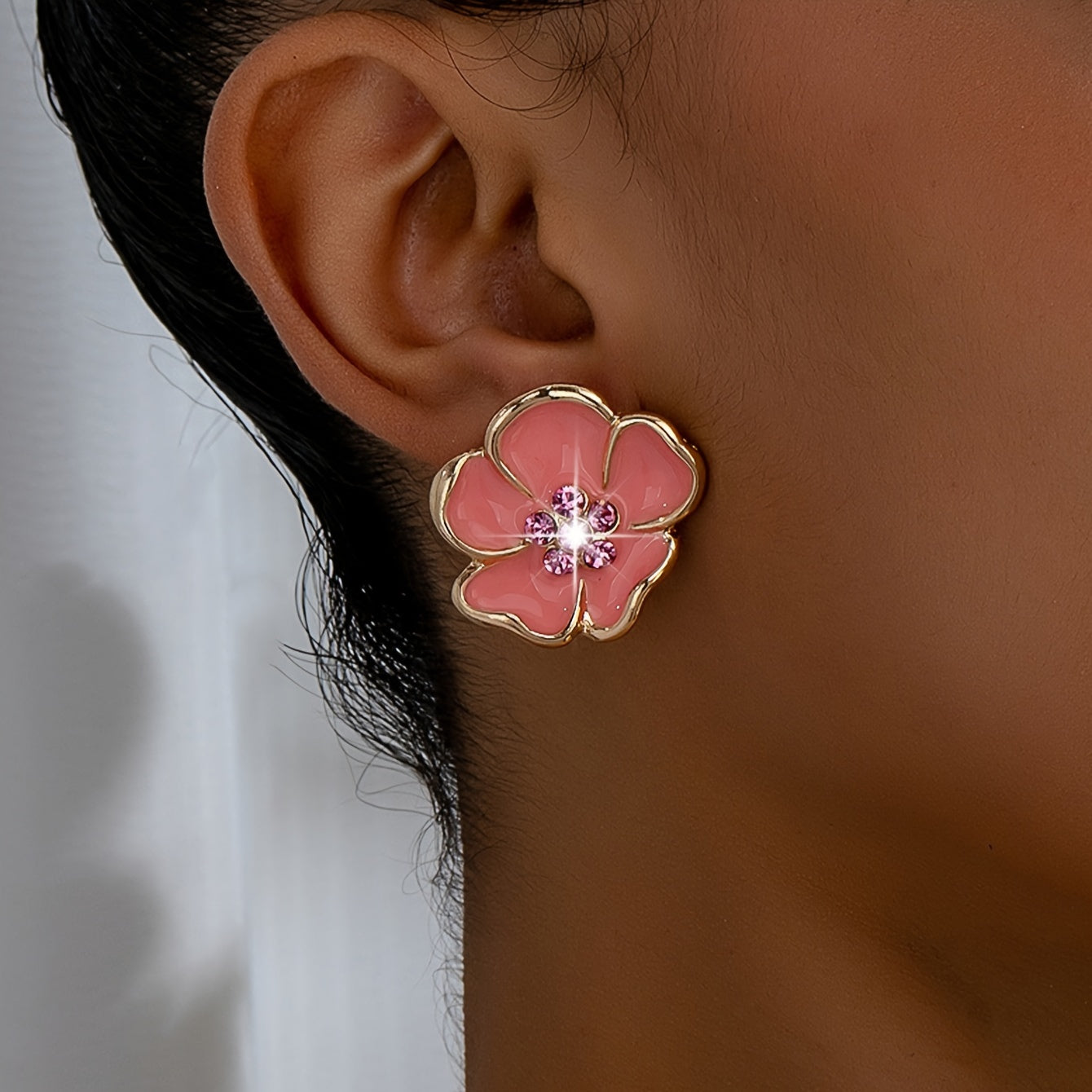 These glamorous clip-on earrings feature a floral design with sparkling rhinestones, perfect for a festive date night or banquet.
