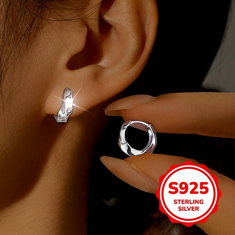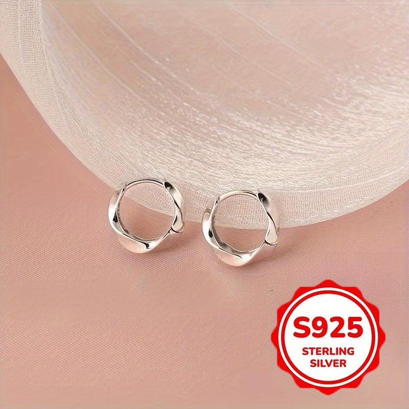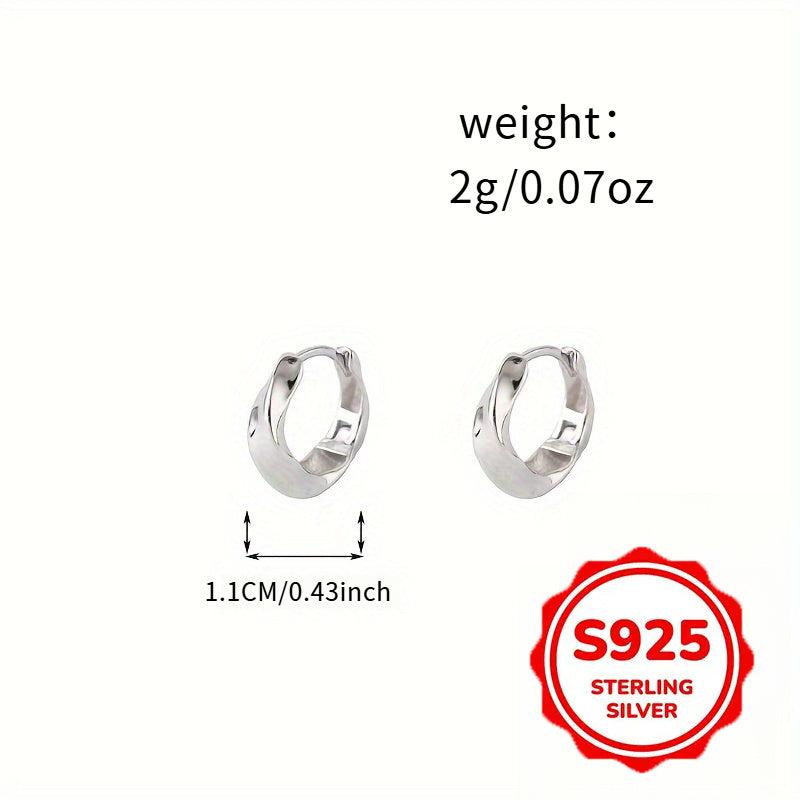 These elegant earrings feature a unique twisted glossy surface design. Made of S925 pure silvery, they are suitable for daily wear with low irritation. Each earring weighs 2g.