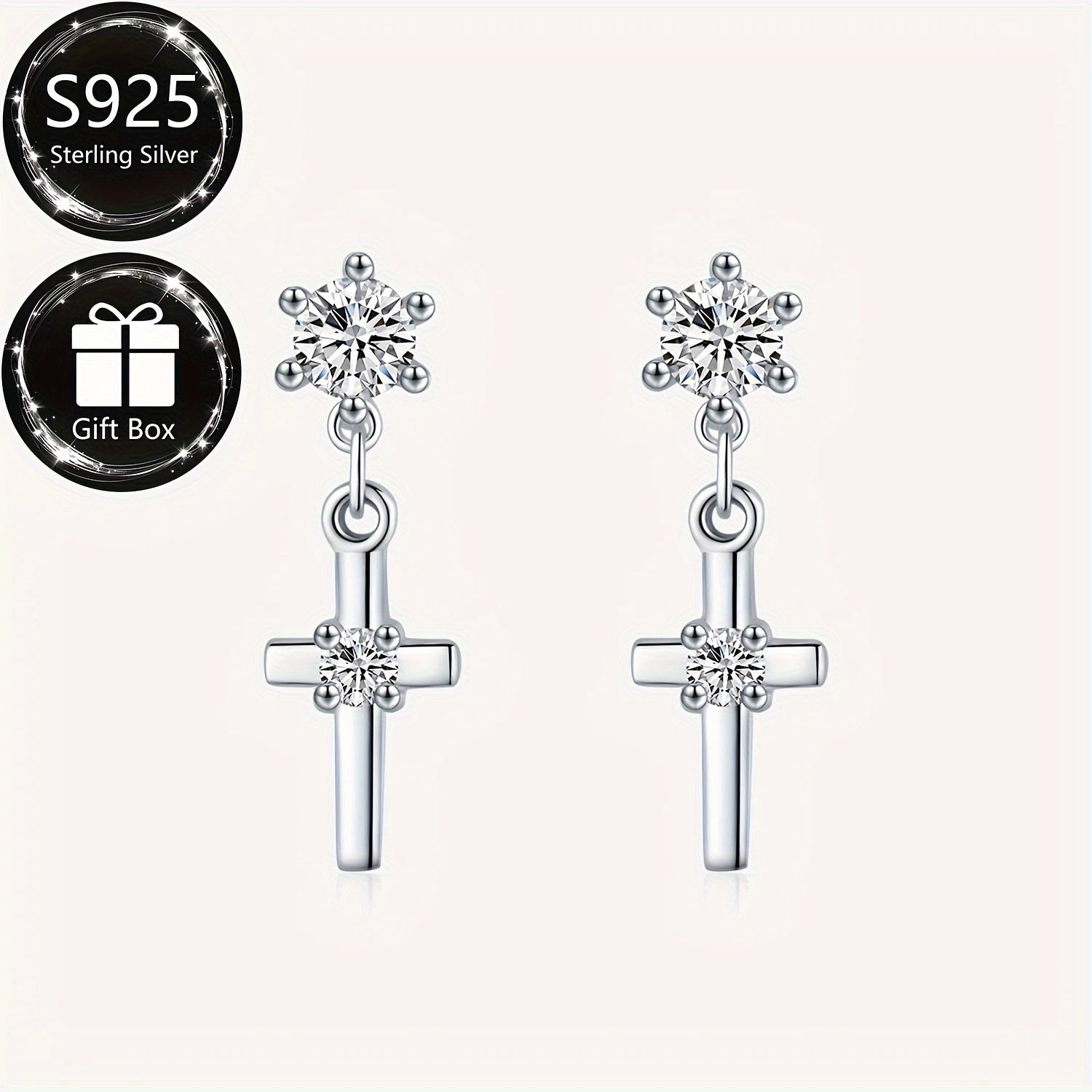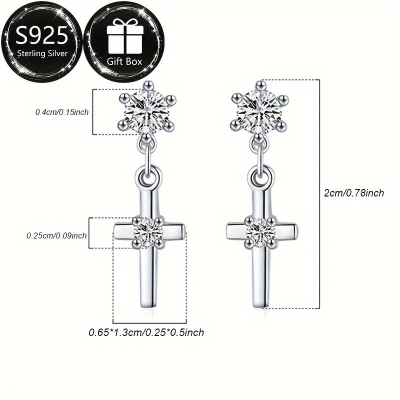 These retro cross earrings are made of hypoallergenic S925 silver and feature synthetic zirconia for a touch of elegance. Perfect for weddings and parties.