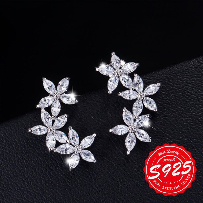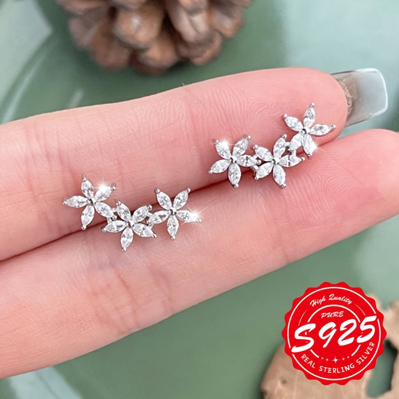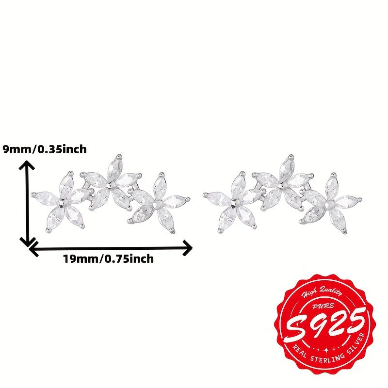 S925 Silver Flower Earrings with Zirconia Inlay for Women