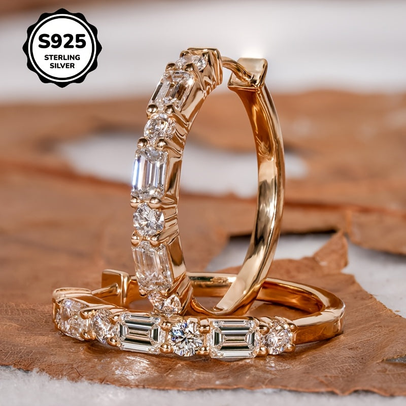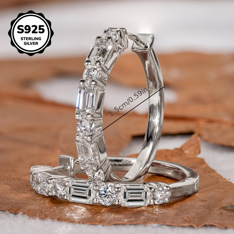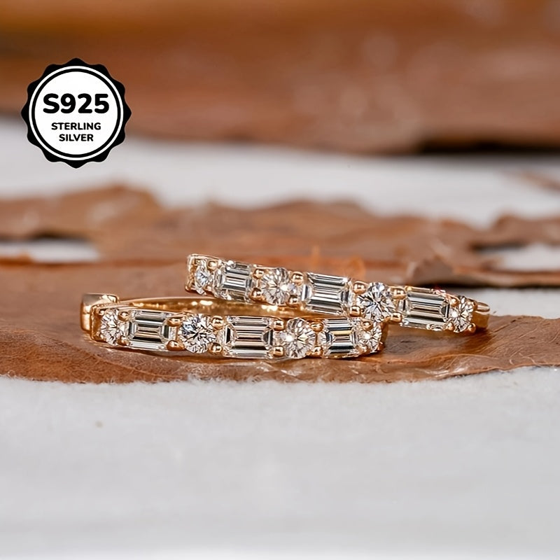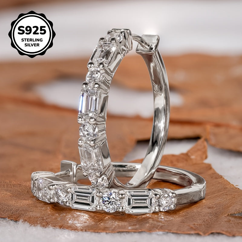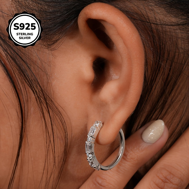 S925 Silver Ladder Earrings Clear Zirconia Stones Everyday Wear