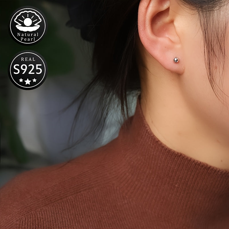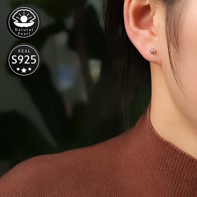 Adorn your ears with these elegant S925 silver earrings featuring natural freshwater pearls. Perfect for any occasion.